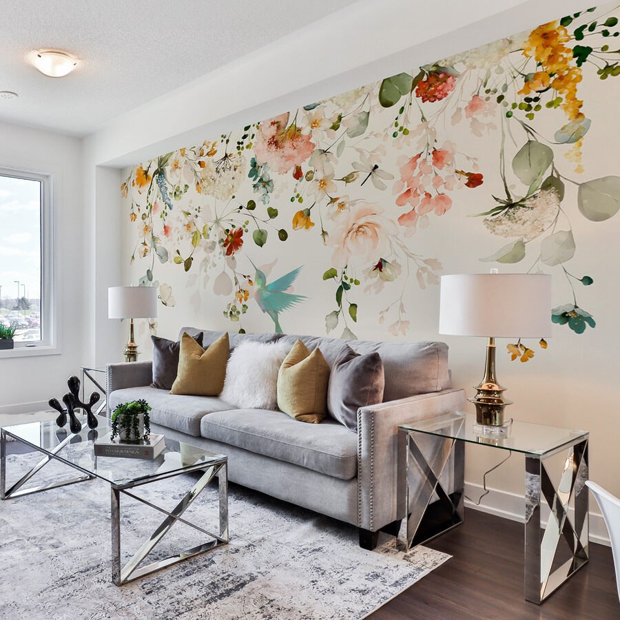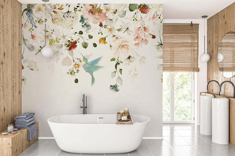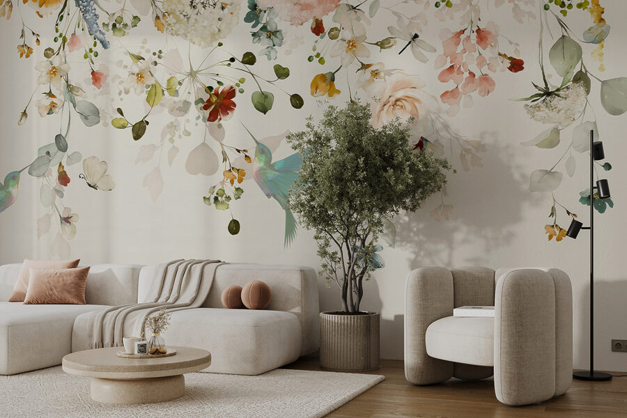 Δείτε αυτή την πανέμορφη τοιχογραφία: “Το κολιμπρί αιωρείται κάτω από την αψίδα των λουλουδιών”. Είναι σαν ένα στιγμιότυπο μιας γαλήνιας στιγμής στον κήπο – με ζωντανές παιώνιες και ένα λεπτεπίλεπτο κολιμπρί, που απλά αράζει κάτω από έναν καταρράκτη ονειρικών λουλουδιών. Φανταστείτε το στο σαλόνι ή την κρεβατοκάμαρά σας, φέρνοντας ένα άγγιγμα της φύσης στο εσωτερικό σας. Είναι ιδανικό αν σας αρέσει αυτή η ήρεμη, φιλόξενη ατμόσφαιρα. Πιστέψτε με, θα το ερωτεύεστε κάθε φορά που θα περνάτε από μπροστά του.