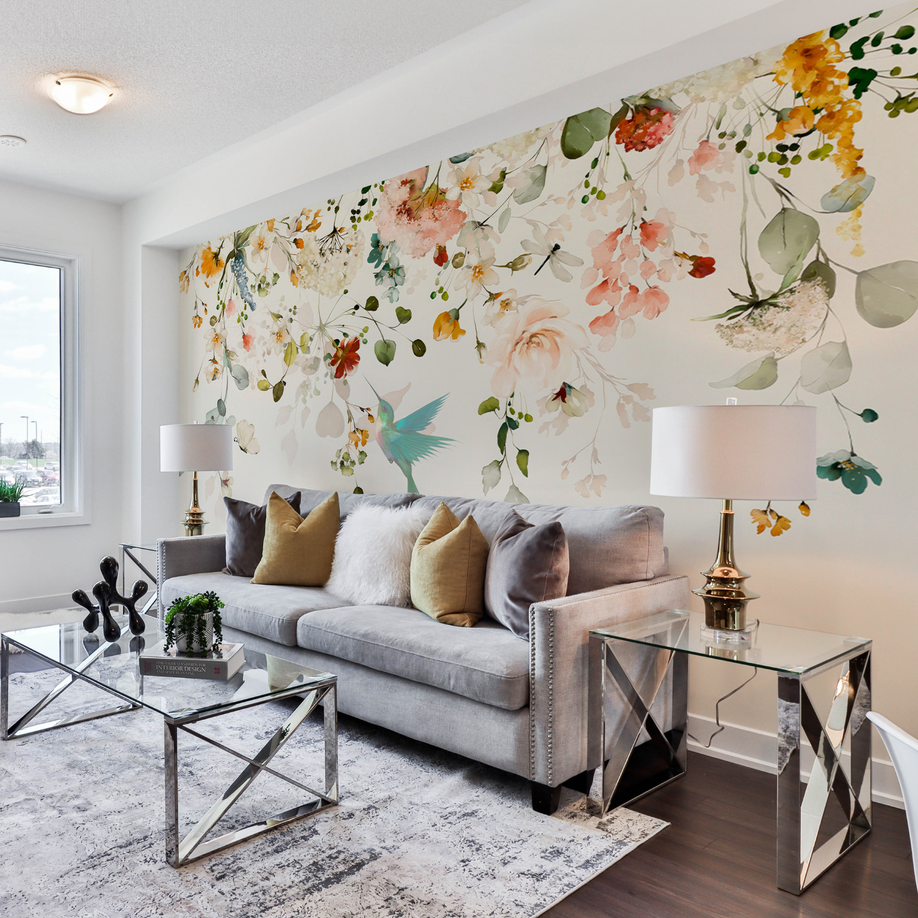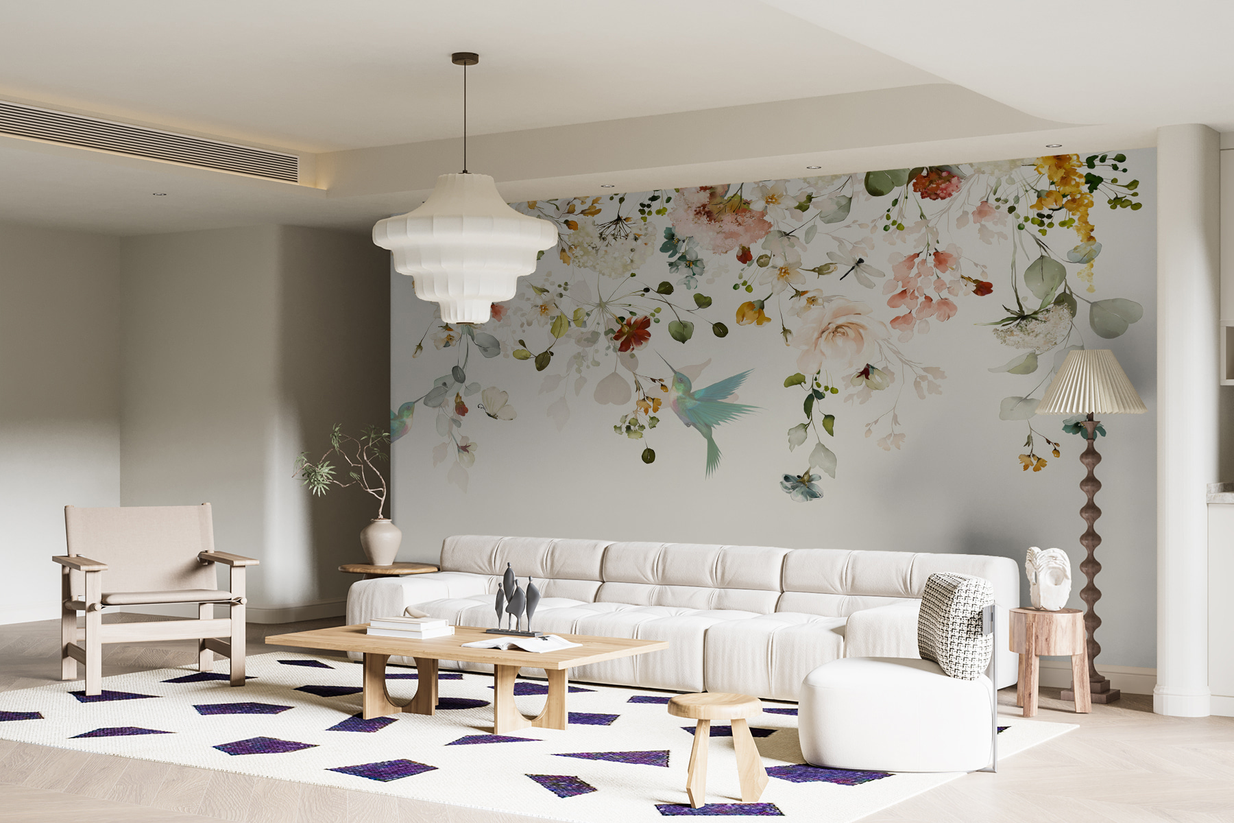 Δείτε αυτή την πανέμορφη τοιχογραφία: “Το κολιμπρί αιωρείται κάτω από την αψίδα των λουλουδιών”. Είναι σαν ένα στιγμιότυπο μιας γαλήνιας στιγμής στον κήπο – με ζωντανές παιώνιες και ένα λεπτεπίλεπτο κολιμπρί, που απλά αράζει κάτω από έναν καταρράκτη ονειρικών λουλουδιών. Φανταστείτε το στο σαλόνι ή την κρεβατοκάμαρά σας, φέρνοντας ένα άγγιγμα της φύσης στο εσωτερικό σας. Είναι ιδανικό αν σας αρέσει αυτή η ήρεμη, φιλόξενη ατμόσφαιρα. Πιστέψτε με, θα το ερωτεύεστε κάθε φορά που θα περνάτε από μπροστά του.