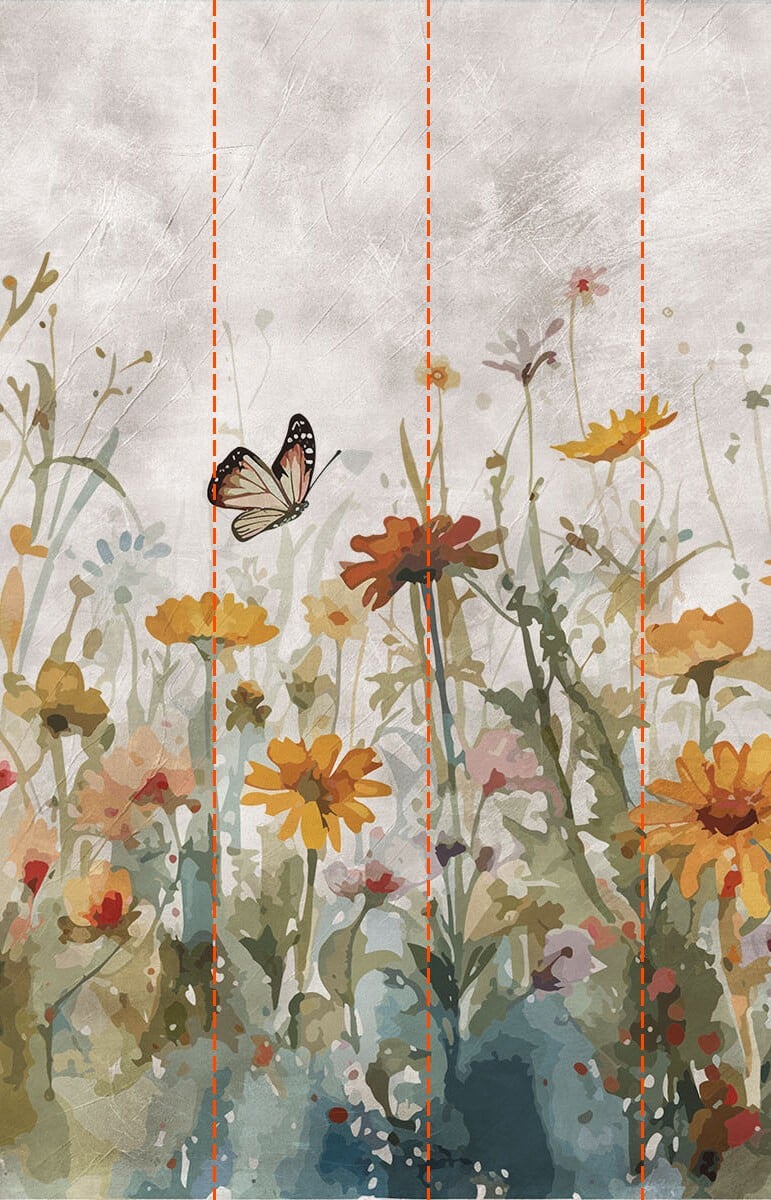 Ταπετσαρίες Πεταλούδες χορεύουν πάνω από πολύχρωμο λιβάδι