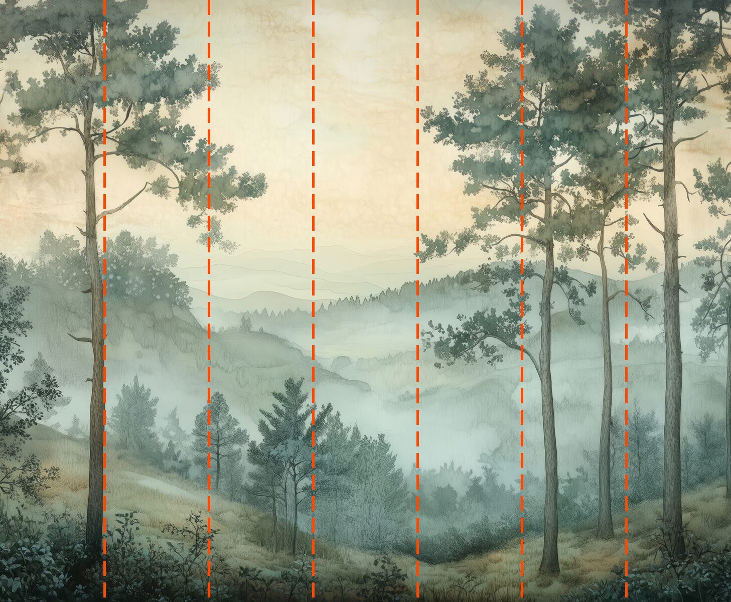 Η ταπετσαρία θα προετοιμαστεί σύμφωνα με τις διαστάσεις που καθορίζονται κατά τη διαδικασία παραγγελίας. Ο καμβάς θα χωριστεί σε βολικά τμήματα, το καθένα με πλάτος έως 50 cm.