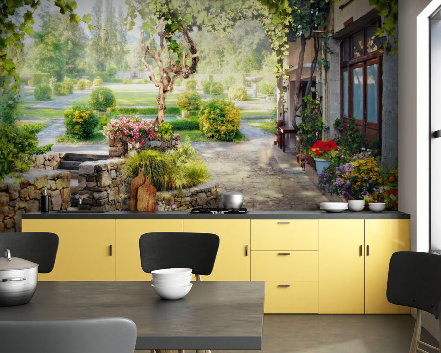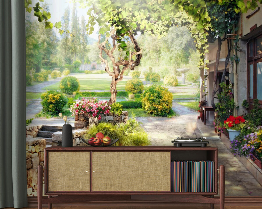 Μπείτε στη γαλήνη ενός ηλιόλουστου κήπου με αυτή τη μαγευτική τοιχογραφία. Φανταστείτε έναν ελικοειδή πέτρινο διάδρομο, πλαισιωμένο από ανθισμένα λουλούδια και ένα χαριτωμένο δέντρο που μοιάζει να ψιθυρίζει μυστικά από το αεράκι. Είναι σαν να φέρνετε ένα γαλήνιο πάρκο μέσα στο σπίτι σας, ιδανικό για εκείνες τις μέρες που λαχταράτε να αποδράσετε αλλά δεν μπορείτε να αφήσετε τον καναπέ. Φανταστείτε να πίνετε τσάι ατενίζοντας αυτό το γαλήνιο σκηνικό, ή ίσως ακόμη και να ονειρεύεστε πικνίκ κάτω από αυτό το δέντρο. Δεν είναι απλώς διακόσμηση, είναι μια απαλή παρότρυνση να επιβραδύνετε και να αναπνεύσετε την ομορφιά της φύσης. Προσθέστε μια πινελιά φρεσκάδας σε κάθε δωμάτιο και ποιος ξέρει; Ίσως εμπνεύσει έναν πράσινο αντίχειρα ακόμα και στους πιο δύσκολους με τα φυτά στο σπίτι!