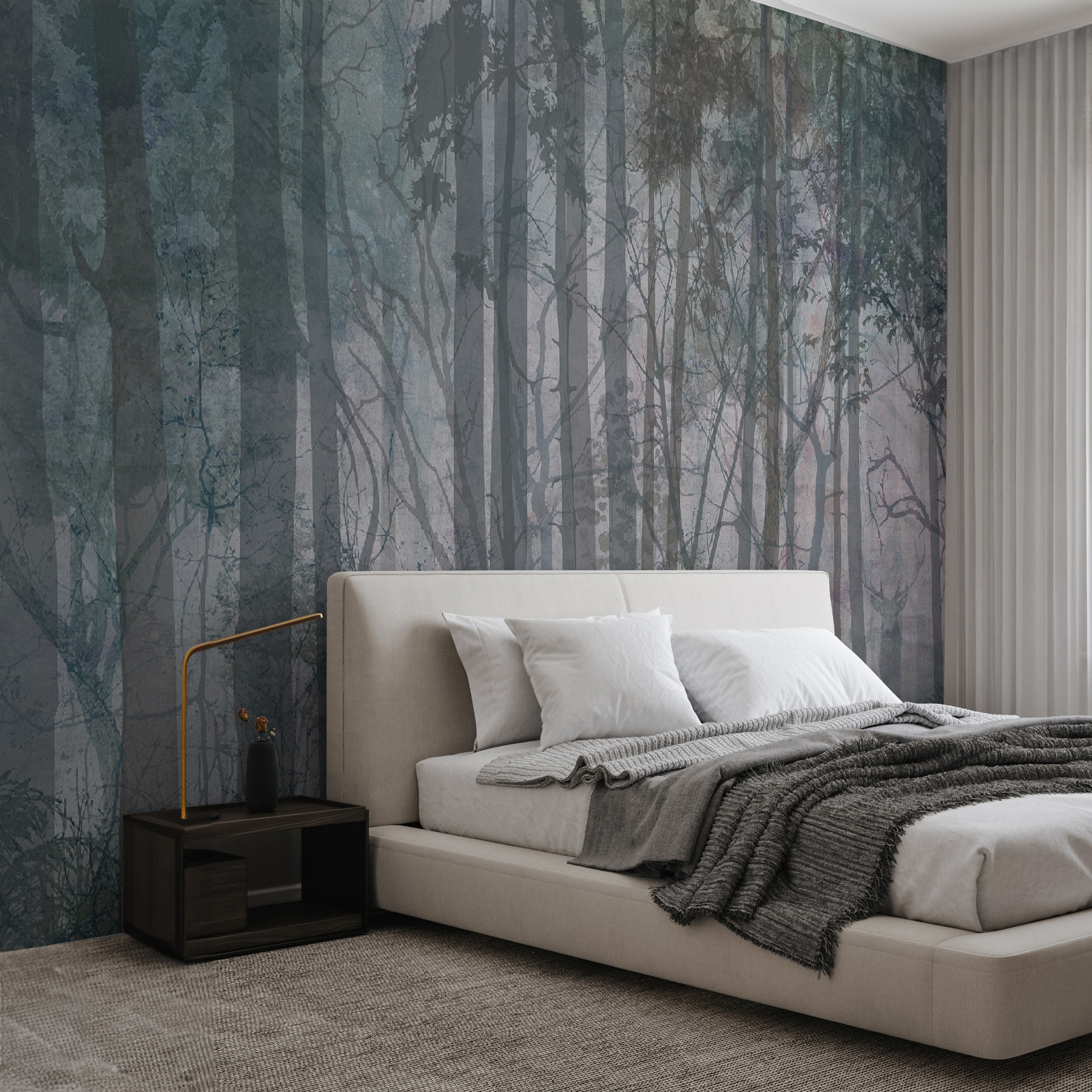 Τα χρώματα είναι διακριτικά, με αποχρώσεις του πράσινου και του μπλε που αναμειγνύονται αβίαστα, καθιστώντας το εύκολο για τα μάτια. Είναι σαν να φέρνετε την ηρεμία του δάσους σε εσωτερικούς χώρους. Επιπλέον, είναι ιδανικό για όποιον αγαπά τη φύση αλλά δεν ενθουσιάζεται με τα έντομα και τον καιρό που συνήθως την συνοδεύουν. Ένα υπέροχο στοιχείο για συζήτηση- οι άνθρωποι μπορεί να βρεθούν να παίζουν “πού είναι το ελάφι;” όταν το επισκέπτονται.