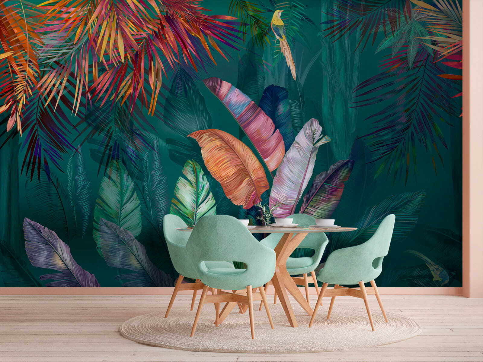 Φανταστείτε να μπαίνετε σε μια καταπράσινη ζούγκλα από το σαλόνι σας – αυτό κάνει αυτή η τοιχογραφία “Ζωντανή σκηνή ζούγκλας με παπαγάλο”. Η έκρηξη των πλούσιων χρωμάτων και των λεπτομερών φύλλων της πρακτικά ακτινοβολεί ζωή! Ο παπαγάλος που κάθεται ψηλά προσθέτει μια παιχνιδιάρικη πινελιά, περιμένοντας να τον ανακαλύψετε εκ νέου κάθε μέρα. Φανταστείτε το: αράξτε με ένα καλό βιβλίο, νιώθοντας ότι βρίσκεστε κάτω από ένα θόλο εξωτικών δέντρων. Σοβαρά τώρα, είναι κάτι που ανεβάζει τη διάθεση! Είναι ιδανικό για να προσθέσετε μια πινελιά άγριας φύσης σε κάθε δωμάτιο. Θέλετε να ξεφύγετε από την καθημερινότητα; Αρκεί να ρίξετε μια ματιά στον τοίχο σας. Πιστέψτε με, αυτή η τοιχογραφία έχει τη μαγεία να μεταμορφώσει το χώρο σας σε μια ζωντανή όαση.