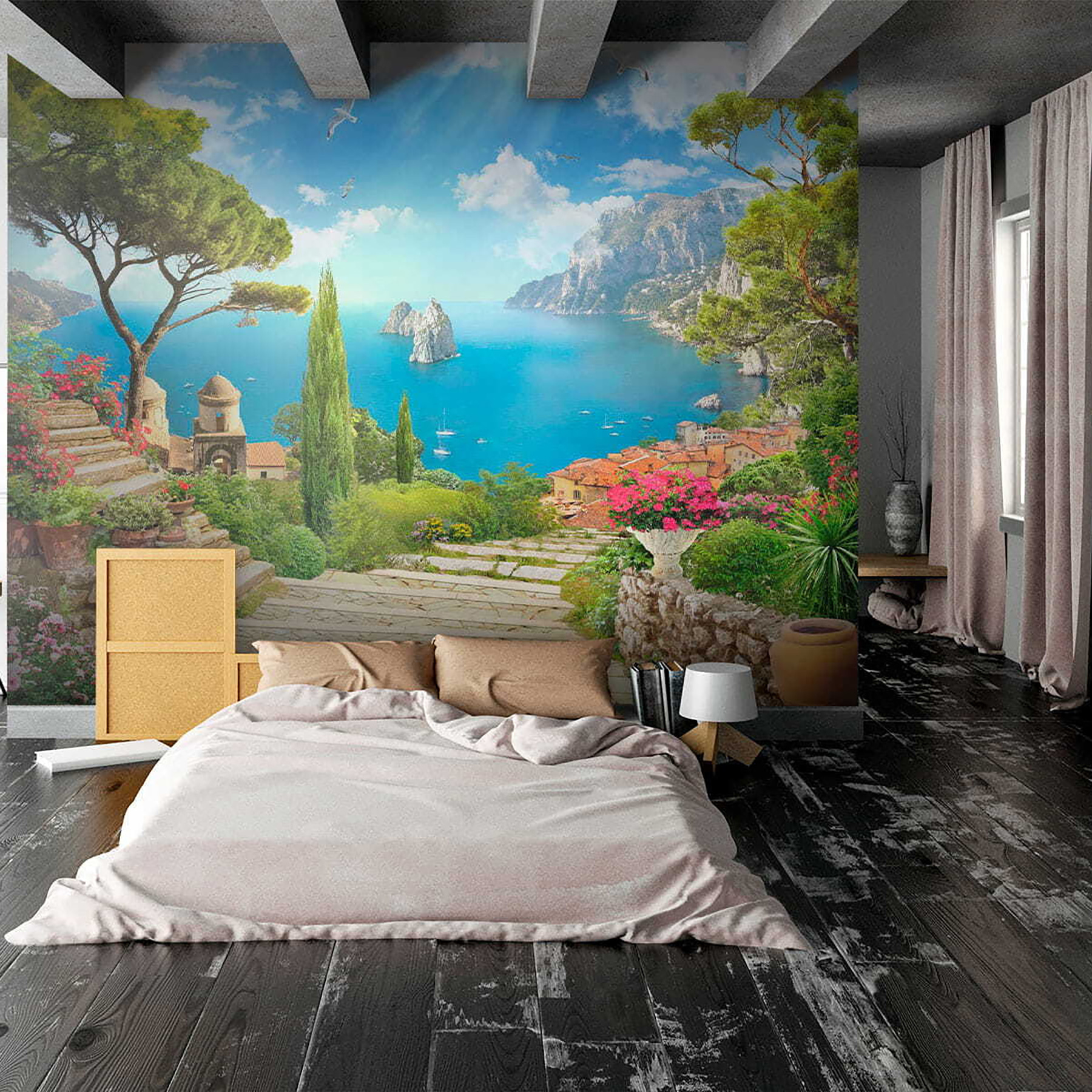 Φανταστείτε το εξής: μπαίνετε στο σαλόνι σας, αλλά περιμένετε – αντί γι’ αυτό σας υποδέχεται μια εκπληκτική θέα στη θάλασσα. Με τις τοιχογραφίες “Ταπετσαρίες Bird Flying in the Sky”, οι τοίχοι σας αποκτούν μια μεγάλη λάμψη. Είναι σαν να προσθέτετε ένα παράθυρο με θέα κατευθείαν στη Μεσόγειο, με μια πινελιά φαντασίας. Σκεφτείτε έντονο πράσινο, γοητευτικά πέτρινα μονοπάτια και πουλιά που πετούν ψηλά.