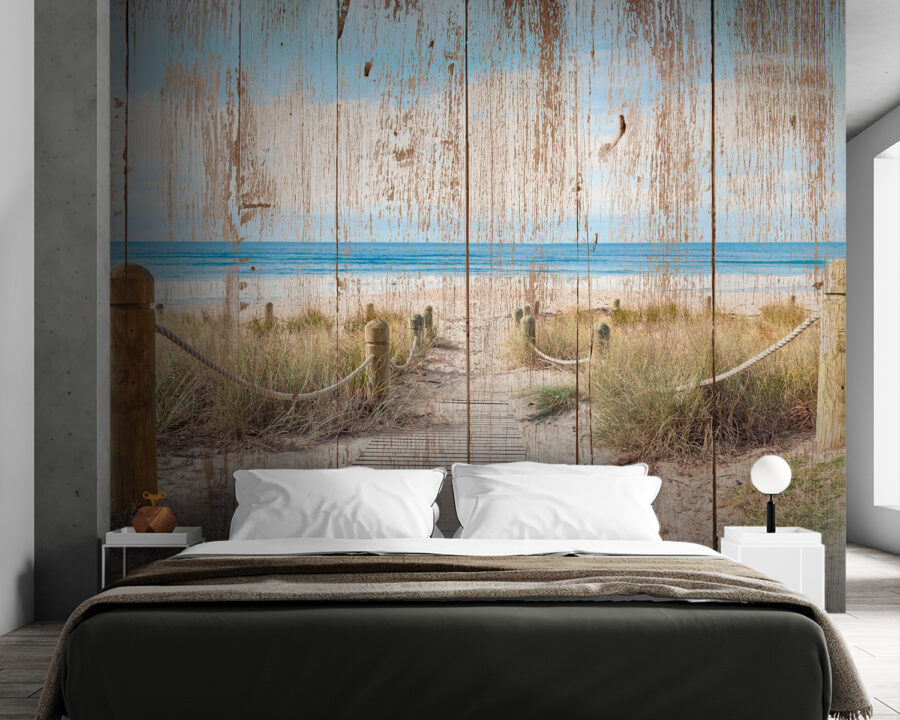 Φανταστείτε ότι μπαίνετε σε ένα άνετο παραθαλάσσιο εξοχικό, ακόμα κι αν βρίσκεστε στο σπίτι σας. Αυτή η τοιχογραφία, με το γοητευτικό ξύλινο μονοπάτι που οδηγεί κατευθείαν στη θάλασσα, ψιθυρίζει ιστορίες για χαλαρές καλοκαιρινές μέρες και αλμυρές αύρες. Είναι σαν να κάνετε μίνι διακοπές κάθε φορά που την κοιτάζετε, δεν νομίζετε; Το ξεθωριασμένο ξύλο προσθέτει μια νότα νοσταλγίας, σαν να έχει δει αμέτρητα ηλιοβασιλέματα. Φανταστείτε να πίνετε τον πρωινό σας καφέ ενώ χαζεύετε τα απαλά κύματα. Ποιος ξέρει, ίσως σας εμπνεύσει για μια αυθόρμητη εκδρομή στην παραλία! Ιδανική για όλους τους λάτρεις της θάλασσας που θέλουν να φέρουν λίγη ηρεμία, διασκέδαση και μια νότα περιπέτειας στον χώρο τους.