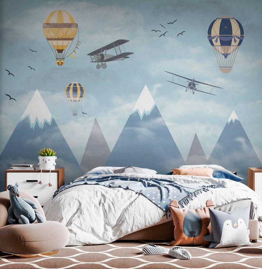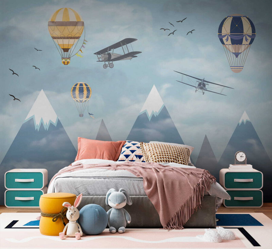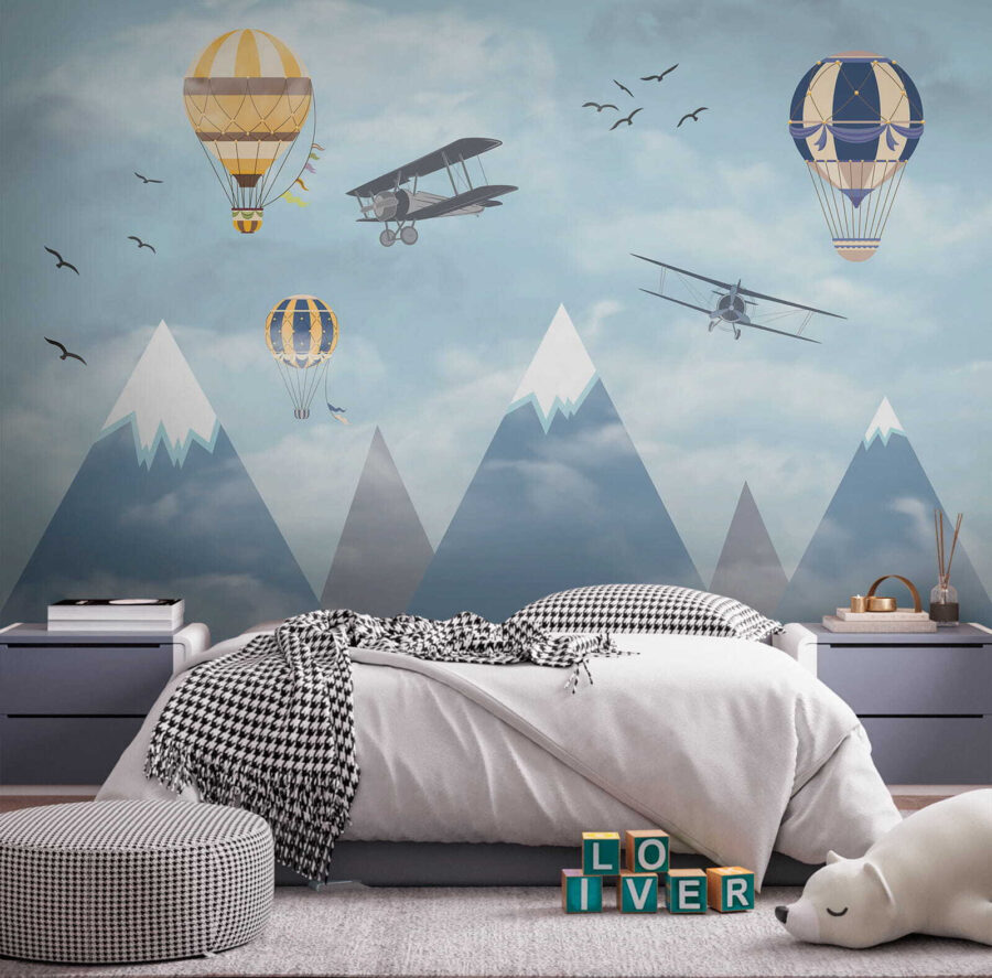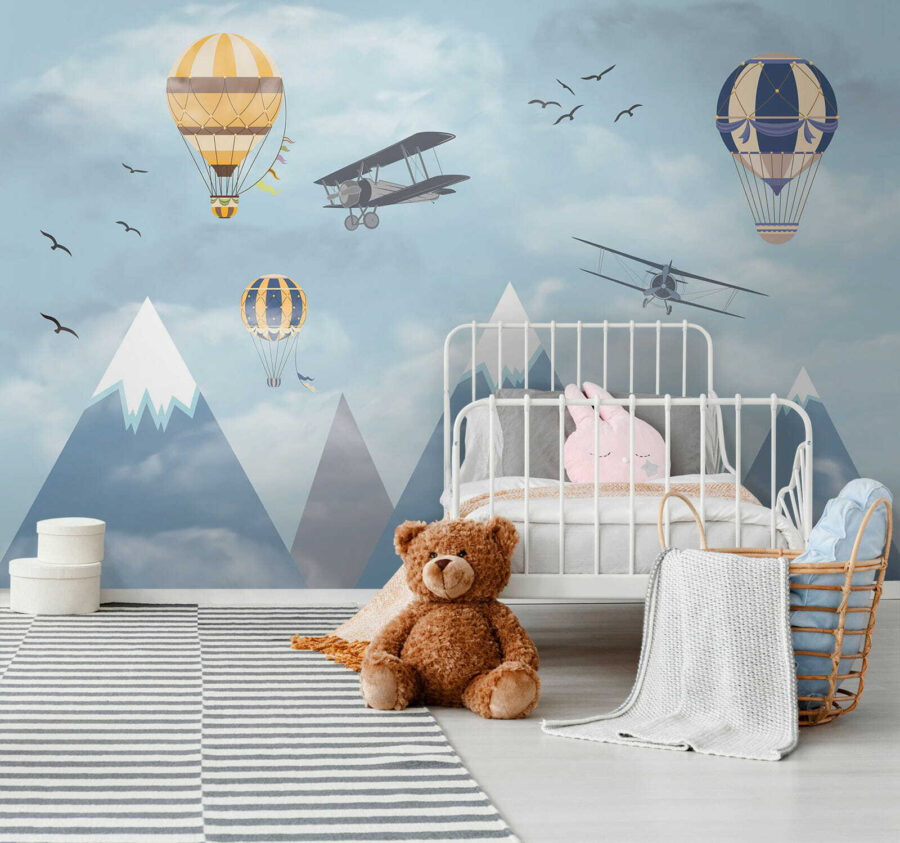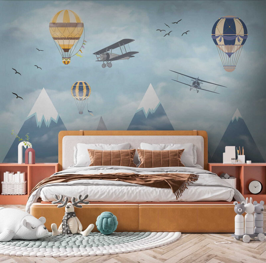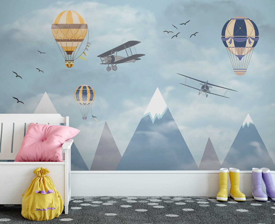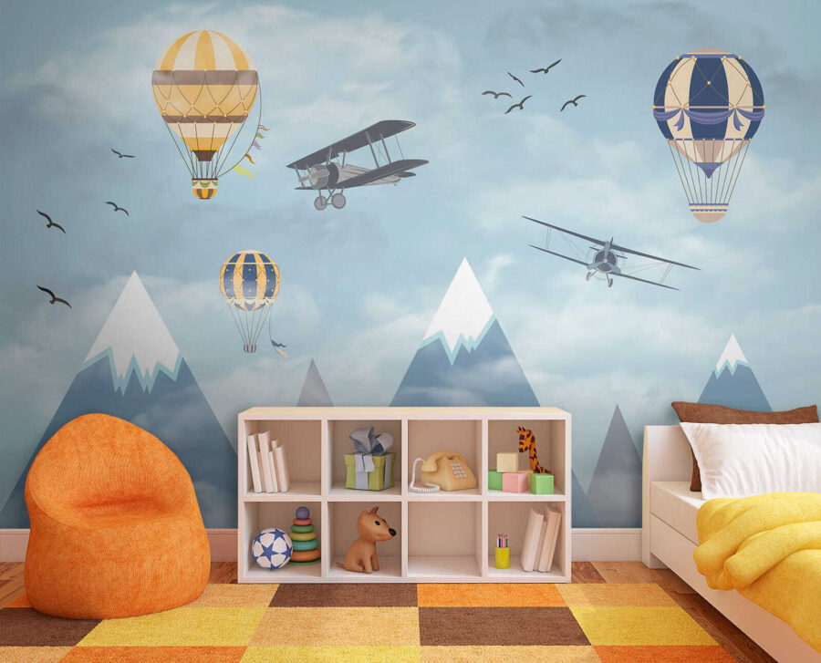 Φανταστείτε να ξυπνάτε σε έναν ουρανό γεμάτο με ιδιόρρυθμα αερόστατα που αιωρούνται ανάμεσα στα σύννεφα, μαζί με περιπετειώδη αεροπλάνα που πετούν και πουλιά που πετούν ψηλά – είναι σκέτη μαγεία! Η τοιχογραφία “Hot Air Balloon in the Sky” φέρνει την αίσθηση του θαύματος και της περιπέτειας κατευθείαν στο δωμάτιο. Ιδανική για να πυροδοτήσει τη δημιουργικότητα και τα όνειρα στους χώρους των παιδιών, είναι σαν να τους δίνει έναν καμβά για να οργιάσει η φαντασία τους. Τα παστέλ μπλε χρώματα και τα απαλά σύννεφα είναι τόσο ηρεμιστικά, κάνοντας τον χώρο να αισθάνεται ανάλαφρος και ευάερος. Δεν είναι απλώς διακόσμηση – είναι ένα ταξίδι στους ουρανούς χωρίς καν να βγείτε από το δωμάτιο. Οι γονείς μπορεί επίσης να νιώσουν ένα τσίμπημα νοσταλγίας, ανακαλώντας όνειρα από μακρινά μέρη και τολμηρά ταξίδια. Ποιος δεν θα ήθελε λίγο από αυτό στο σπίτι του; Επιπλέον, αυτά τα χιονισμένα βουνά στο φόντο; Απλά μαγευτικά. Αυτή η τοιχογραφία είναι ουσιαστικά ένα όνειρο σε μορφή τέχνης τοίχου – ατελείωτα γοητευτική και όμορφα γαλήνια. Τα παιδιά θα το λατρέψουν, το ίδιο και το παιδί μέσα σας.