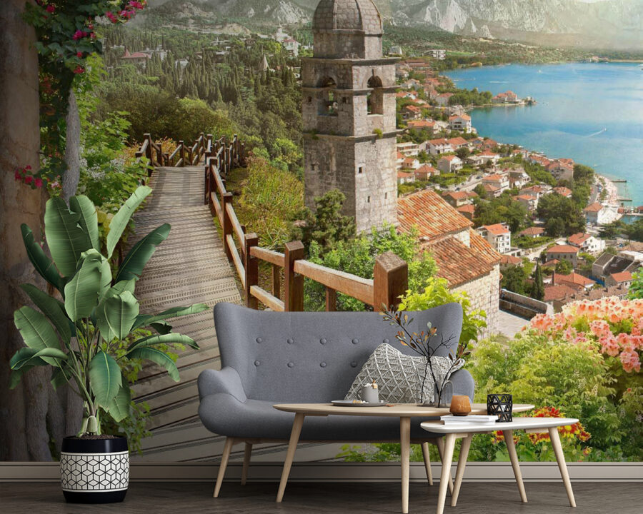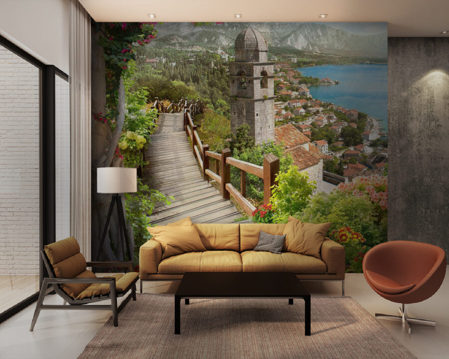 Φανταστείτε να μπαίνετε σε μια ονειρική απόδραση κάθε φορά που κοιτάζετε τον τοίχο σας. Αυτή η τοιχογραφία «Σκάλα που οδηγεί σε μια πόλη» ψιθυρίζει ιστορίες για ηλιόλουστες βόλτες σε ζωντανούς κήπους, με λουλούδια που περιμένουν να τα θαυμάσετε. Το απαλό ξύλινο μονοπάτι σας οδηγεί σε ένα γοητευτικό χωριό, όπου τα λιθόστρωτα δρομάκια και οι πολύχρωμες στέγες τραβούν απαλά τη φαντασία σας. Ίσως να ακούτε σχεδόν το γέλιο των παιδιών ή τον μακρινό ήχο των κυμάτων που χτυπούν στην ακτή. Είναι ένα κομμάτι παραδείσου μέσα στο σπίτι σας. Μεταμορφώστε τον χώρο σας με αυτή την τοιχογραφία και αφήστε την να σας παρασύρει, έστω και για μια στιγμή — είναι το τέλειο θέμα συζήτησης για τις χαλαρές Κυριακές με τους φίλους σας. Κατάλληλη για όλους τους λάτρεις της φύσης και τους ονειροπόλους, αυτή η τοιχογραφία προσθέτει ζεστασιά και ζωή σε κάθε δωμάτιο.