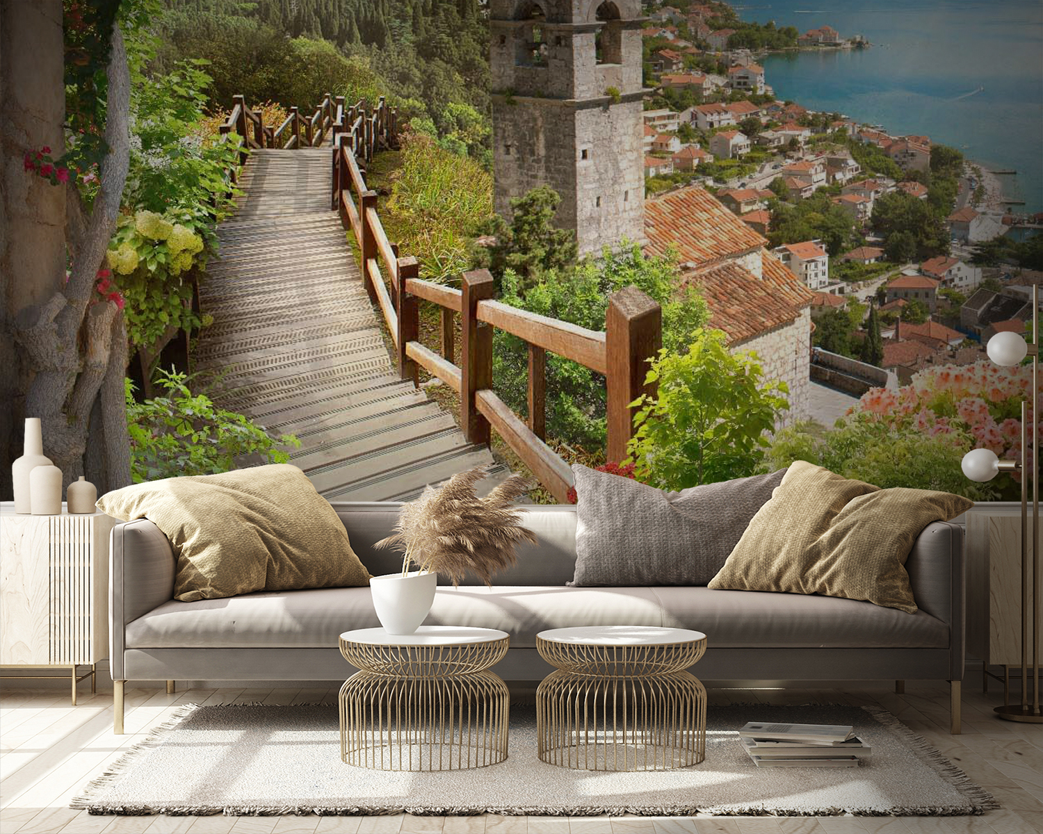 Φανταστείτε να μπαίνετε σε μια ονειρική απόδραση κάθε φορά που κοιτάζετε τον τοίχο σας. Αυτή η τοιχογραφία «Σκάλα που οδηγεί σε μια πόλη» ψιθυρίζει ιστορίες για ηλιόλουστες βόλτες σε ζωντανούς κήπους, με λουλούδια που περιμένουν να τα θαυμάσετε. Το απαλό ξύλινο μονοπάτι σας οδηγεί σε ένα γοητευτικό χωριό, όπου τα λιθόστρωτα δρομάκια και οι πολύχρωμες στέγες τραβούν απαλά τη φαντασία σας. Ίσως να ακούτε σχεδόν το γέλιο των παιδιών ή τον μακρινό ήχο των κυμάτων που χτυπούν στην ακτή. Είναι ένα κομμάτι παραδείσου μέσα στο σπίτι σας. Μεταμορφώστε τον χώρο σας με αυτή την τοιχογραφία και αφήστε την να σας παρασύρει, έστω και για μια στιγμή — είναι το τέλειο θέμα συζήτησης για τις χαλαρές Κυριακές με τους φίλους σας. Κατάλληλη για όλους τους λάτρεις της φύσης και τους ονειροπόλους, αυτή η τοιχογραφία προσθέτει ζεστασιά και ζωή σε κάθε δωμάτιο.