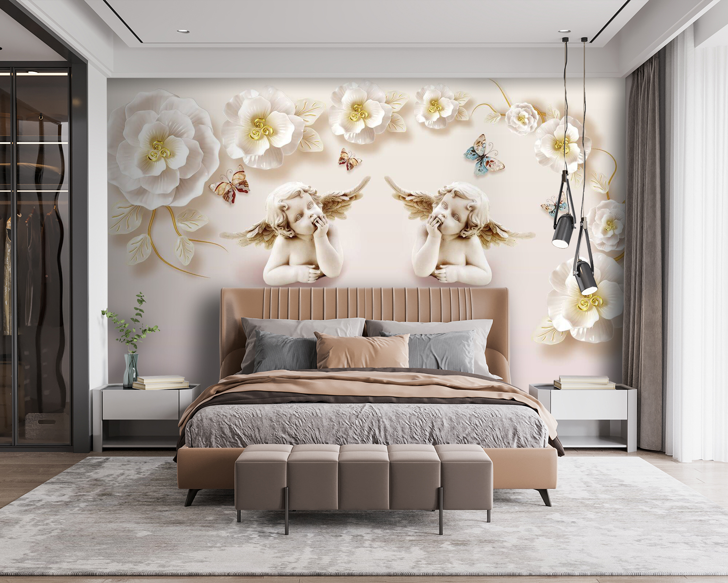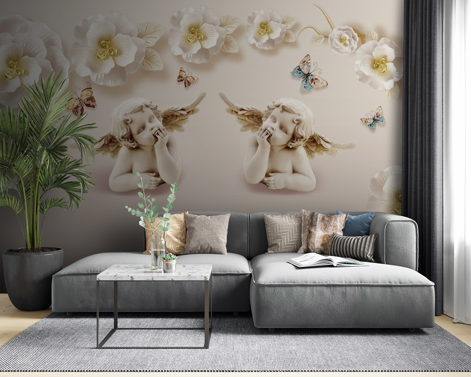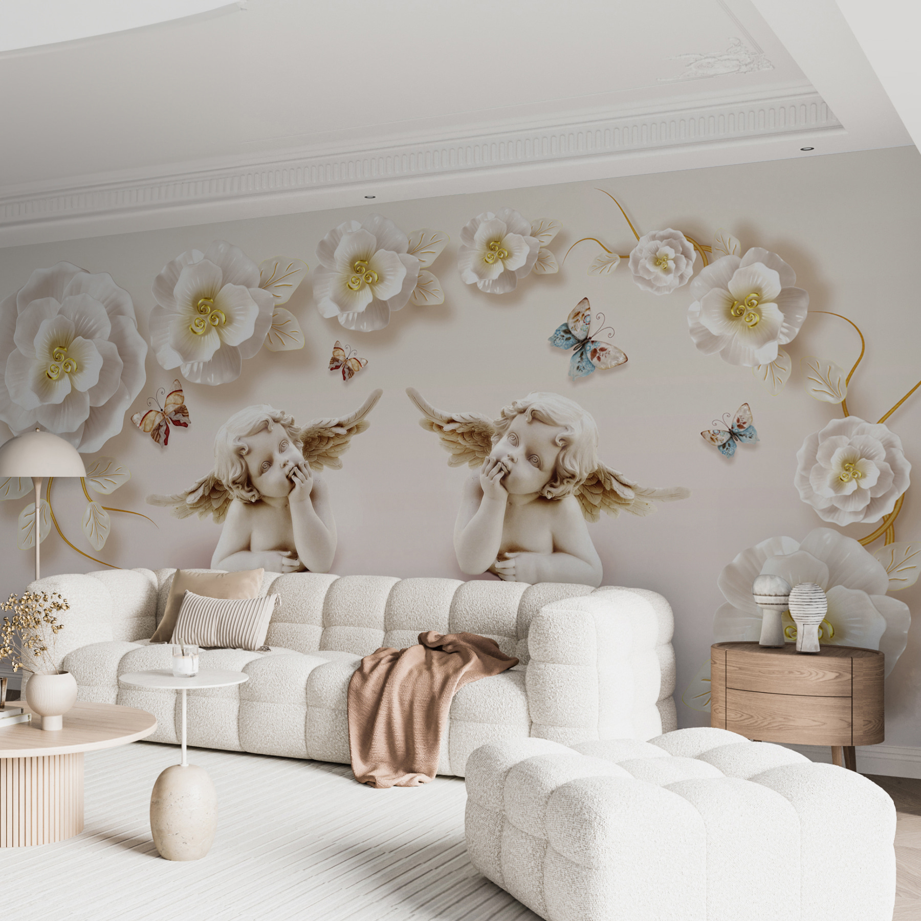 Φανταστείτε το στον τοίχο σας – ένα ζευγάρι χαριτωμένων μικρών αγγελούδων με φτερά, περιτριγυρισμένα από ονειρικά, υπερμεγέθη λουλούδια και πεταλούδες που φτερουγίζουν απαλά. Είναι σαν να μπαίνετε σε έναν παραμυθένιο κήπο κάθε φορά που μπαίνετε στο δωμάτιο. Αυτή η τοιχογραφία δεν είναι απλώς διακόσμηση – είναι μια ολόκληρη διάθεση. Φανταστείτε να επιστρέφετε στο σπίτι μετά από μια κουραστική μέρα και αυτή η γαλήνια σκηνή να σας καλωσορίζει, ανεβάζοντας αμέσως τη διάθεσή σας. Ιδανικό για όποιον αγαπά μια πινελιά ιδιοτροπίας με μια πινελιά κομψότητας. Επιπλέον, είναι ένα καταπληκτικό στοιχείο για συζήτηση – οι καλεσμένοι δεν θα σταματήσουν να εκστασιάζονται για το καλλιτεχνικό σας γούστο. Εδώ η αρχιτεκτονική συναντά την παραμυθένια γοητεία – τέλεια για όσους επιθυμούν λίγη γοητεία στην καθημερινότητά τους.