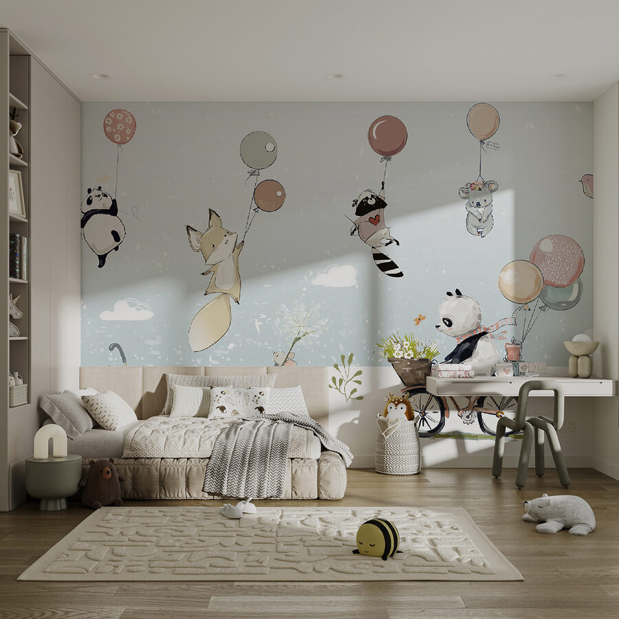 Φανταστείτε να μπαίνετε στο δωμάτιο του παιδιού σας και να σας υποδέχεται μια παράξενη σκηνή με ένα πάντα που κρατάει ένα καλάθι με λουλούδια – είναι σαν να μπαίνετε σε μια γλυκιά ονειροπόληση. Αυτή η απολαυστική τοιχογραφία είναι ιδανική για παιδικούς σταθμούς ή για οποιονδήποτε χώρο όπου θέλετε μια πινελιά παιχνιδιάρικης γοητείας. Η απαλή, χνουδωτή εμφάνιση του πάντα σε συνδυασμό με πολύχρωμα μπαλόνια και ένα ποδήλατο, σημαίνει διασκέδαση και περιπέτεια. Φανταστείτε να λέτε παραμύθια για ύπνο εμπνευσμένα από αυτούς τους γοητευτικούς χαρακτήρες. Δεν είναι απλώς διακόσμηση- είναι ένα θέατρο για τη φαντασία, που φέρνει χαμόγελα και λίγη μαγεία στις καθημερινές στιγμές.