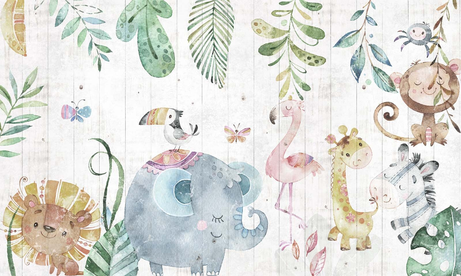 Μεταμορφώστε οποιονδήποτε χώρο σε μια παιχνιδιάρικη ζούγκλα με αυτή την απολαυστική τοιχογραφία τοίχου με αξιολάτρευτα ζωάκια σε απαλές, ακουαρέλες. Φανταστείτε να μπαίνετε σε ένα δωμάτιο που σφύζει από τη γοητεία μιας σκανταλιάρας μαϊμούς, ενός ευγενικού ελέφαντα και ενός φλαμίνγκο που παίρνει πόζα – είναι σαν ένα μίνι σαφάρι στο σπίτι! Ιδανική για παιδικά δωμάτια ή χώρους παιχνιδιού, αυτή η τοιχογραφία φέρνει άμεση χαρά και μια δόση ιδιοτροπίας. Φανταστείτε τα μικρά παιδιά να χαχανίζουν καθώς εντοπίζουν τα αγαπημένα τους ζωάκια. Τα καταπραϋντικά χρώματα είναι εύκολα για τα μάτια, δημιουργώντας ένα γαλήνιο σκηνικό για περιπέτειες φανταστικές και πραγματικές. Είναι κάτι περισσότερο από διακόσμηση, είναι ένα χαρούμενο μέρος για να ονειρευτείτε!