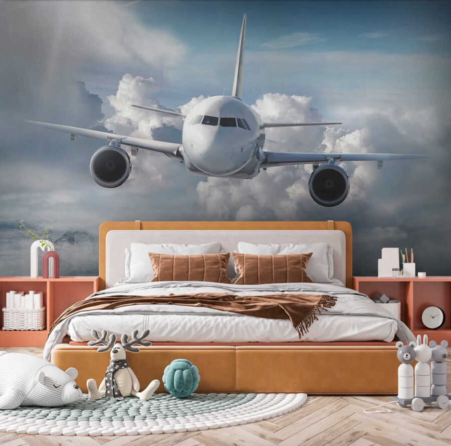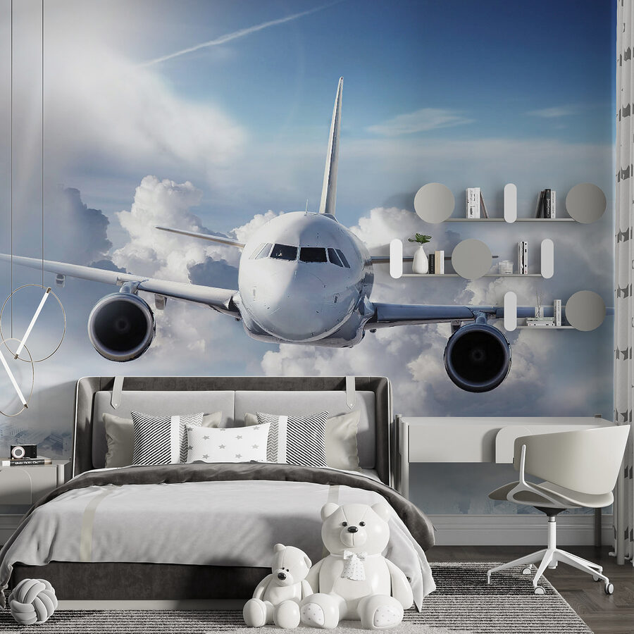Ταξιδέψτε πάνω από τα σύννεφα χωρίς να βγείτε από το δωμάτιο! Αυτή η τοιχογραφία, με ένα γαλήνιο αεροπλάνο που ταξιδεύει ανάμεσα σε χνουδωτά σύννεφα, είναι ιδανική για να προκαλέσει την αίσθηση της περιπέτειας. Μεταμορφώνει αμέσως κάθε χώρο σε μια ονειρική απόδραση όπου η φαντασία μπορεί να πετάξει ψηλά. Φανταστείτε το δωμάτιο ενός παιδιού να μετατρέπεται σε ένα άνετο πιλοτήριο, εμπνέοντας ονειροπολήσεις για μακρινά μέρη και ατελείωτους ουρανούς. Με απαλές αποχρώσεις και μια ήρεμη ατμόσφαιρα, είναι σαν να έχετε ένα παράθυρο στα θαύματα του κόσμου ακριβώς στον τοίχο. Αφήστε αυτή την τοιχογραφία να απογειώσει τη διακόσμηση και να δημιουργήσει μια παιχνιδιάρικη ατμόσφαιρα – ιδανική τόσο για τους εκκολαπτόμενους εξερευνητές όσο και για τους έμπειρους ταξιδιώτες στην καρδιά!