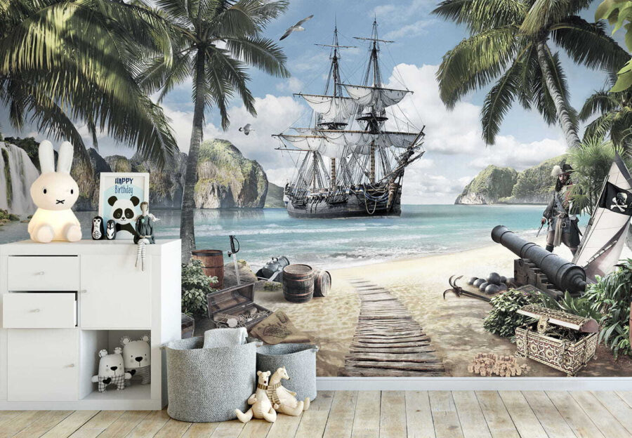 Μεταμορφώστε οποιονδήποτε χώρο σε έναν ηλιόλουστο παράδεισο με την τοιχογραφία “Ταπετσαρίες Pirate Ship Anchored by Tropical Paradise”. Φανταστείτε να μπαίνετε σε έναν κόσμο όπου η θαλασσινή αύρα χτενίζει απαλά το πρόσωπό σας και οι ζωντανές φοινικιές λικνίζονται από πάνω. Αυτή η τοιχογραφία ζωντανεύει μια εκπληκτική σκηνή – ένα περιπετειώδες πειρατικό πλοίο αγκυροβολημένο κοντά σε κρυστάλλινα νερά, περιτριγυρισμένο από θησαυρούς και πλούσια φύση. Τα παιδιά θα νιώσουν σαν να είναι μέρος μιας περιπέτειας που ξεφαντώνει, εξερευνώντας κρυμμένους θησαυρούς και μυστικά νησιά. Είναι κάτι περισσότερο από απλή διακόσμηση- είναι μια σπίθα για δημιουργικότητα, εμπνευσμένες ιστορίες και ατελείωτες ονειροπολήσεις. Ποιος δεν θα ήθελε να σαλπάρει μακριά κάθε φορά που ρίχνει μια ματιά στον τοίχο του; Ιδανική για παιδικά δωμάτια ή υπνοδωμάτια, αυτή η τοιχογραφία δημιουργεί μια γοητευτική απόδραση που σίγουρα θα κάνει όλους να χαμογελάσουν. Αφήστε τη φαντασία να σαλπάρει!