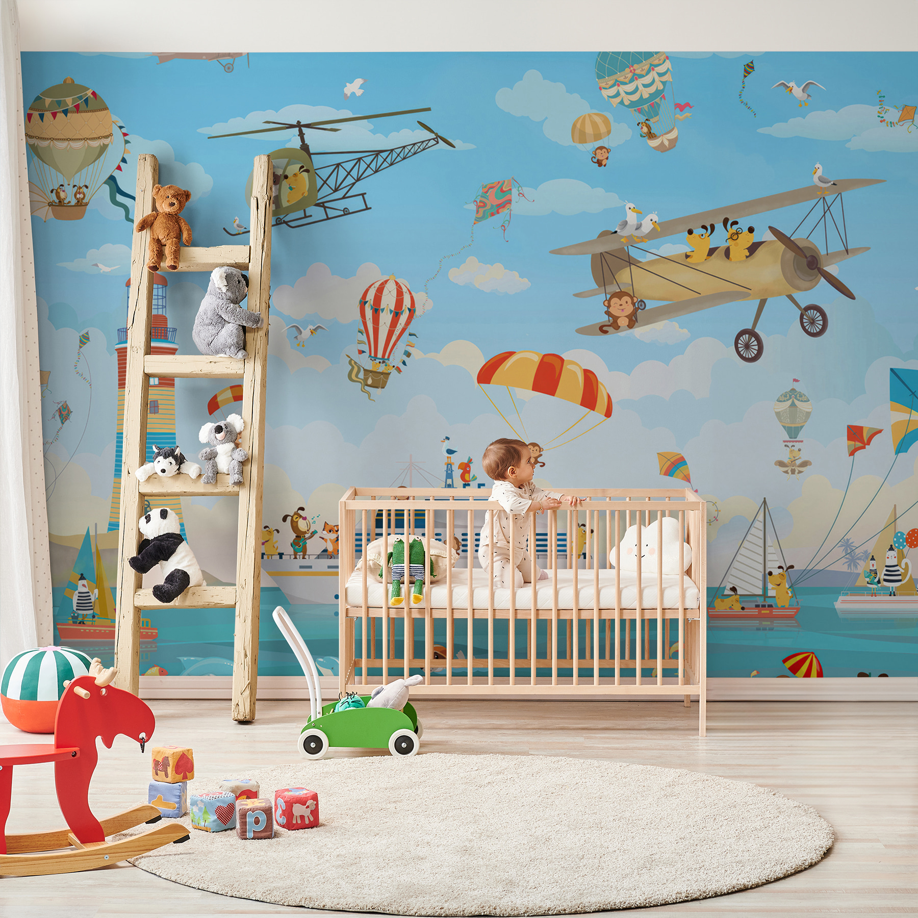 Θέλατε ποτέ να προσθέσετε μια πινελιά περιπέτειας στο δωμάτιο του παιδιού σας; Αυτή η τοιχογραφία “Μαϊμού που κρατάει αλεξίπτωτο” είναι ό,τι πρέπει! Αποτελεί μέρος της συλλογής τοιχογραφιών Children Ταπετσαρίες και είναι γεμάτη με αλλόκοτη γοητεία. Φανταστείτε αυτό: θρασύτατες μαϊμούδες, αλεξίπτωτα που πετούν και μια καταιγίδα διασκεδαστικών δραστηριοτήτων – είναι σαν μια μίνι περιπέτεια στους τοίχους τους! Ιδανικό για τον μικρό σας εξερευνητή, εξάπτει τη φαντασία και φωτίζει τον χώρο. Κάθε ματιά μπορεί να φέρει ένα χαμόγελο ή ένα γέλιο- είναι ένα απολαυστικό, οπτικό παραμύθι που είναι πάντα ανοιχτό. Ιδανικό για την απελευθέρωση της νεανικής ενέργειας και δημιουργικότητας!