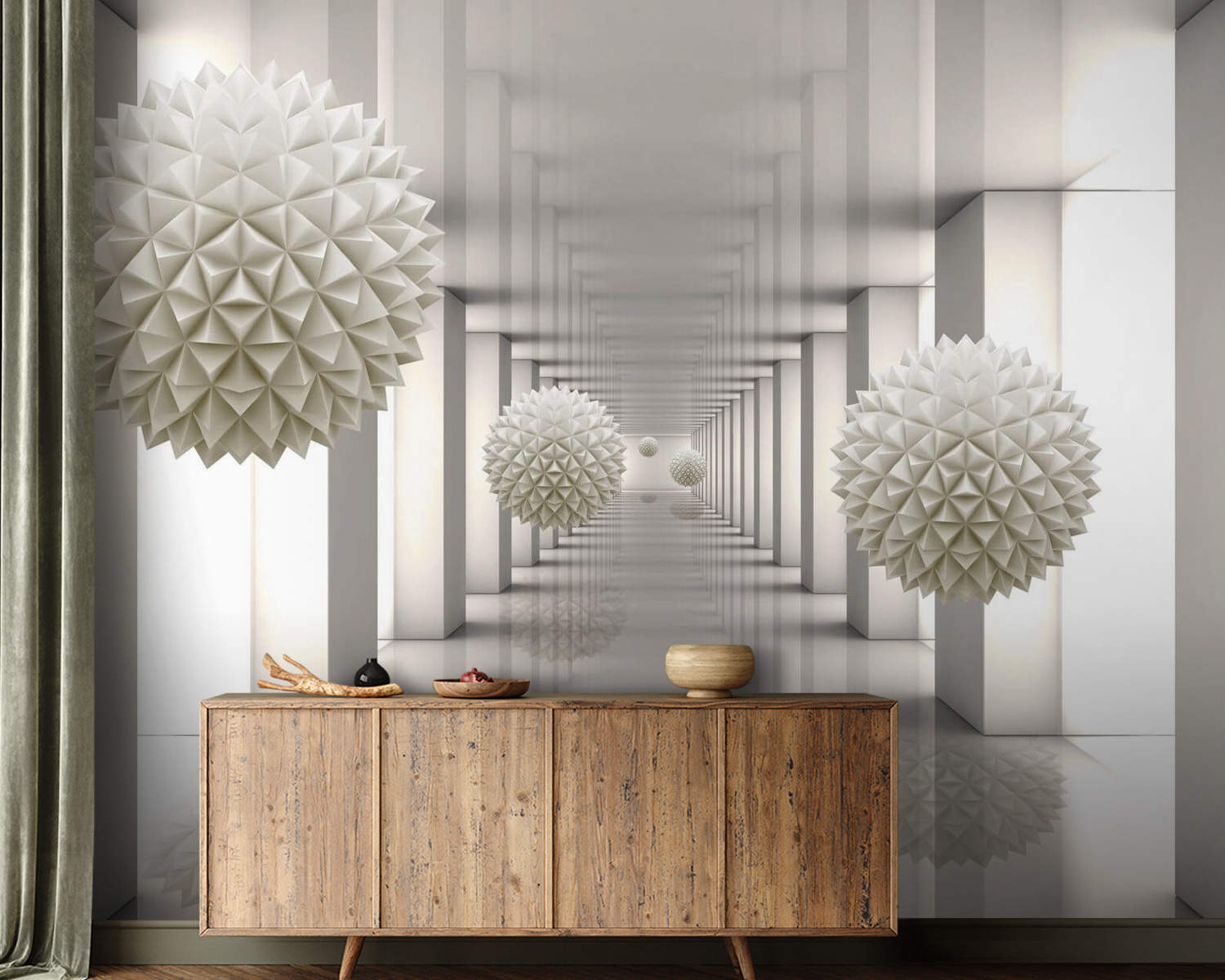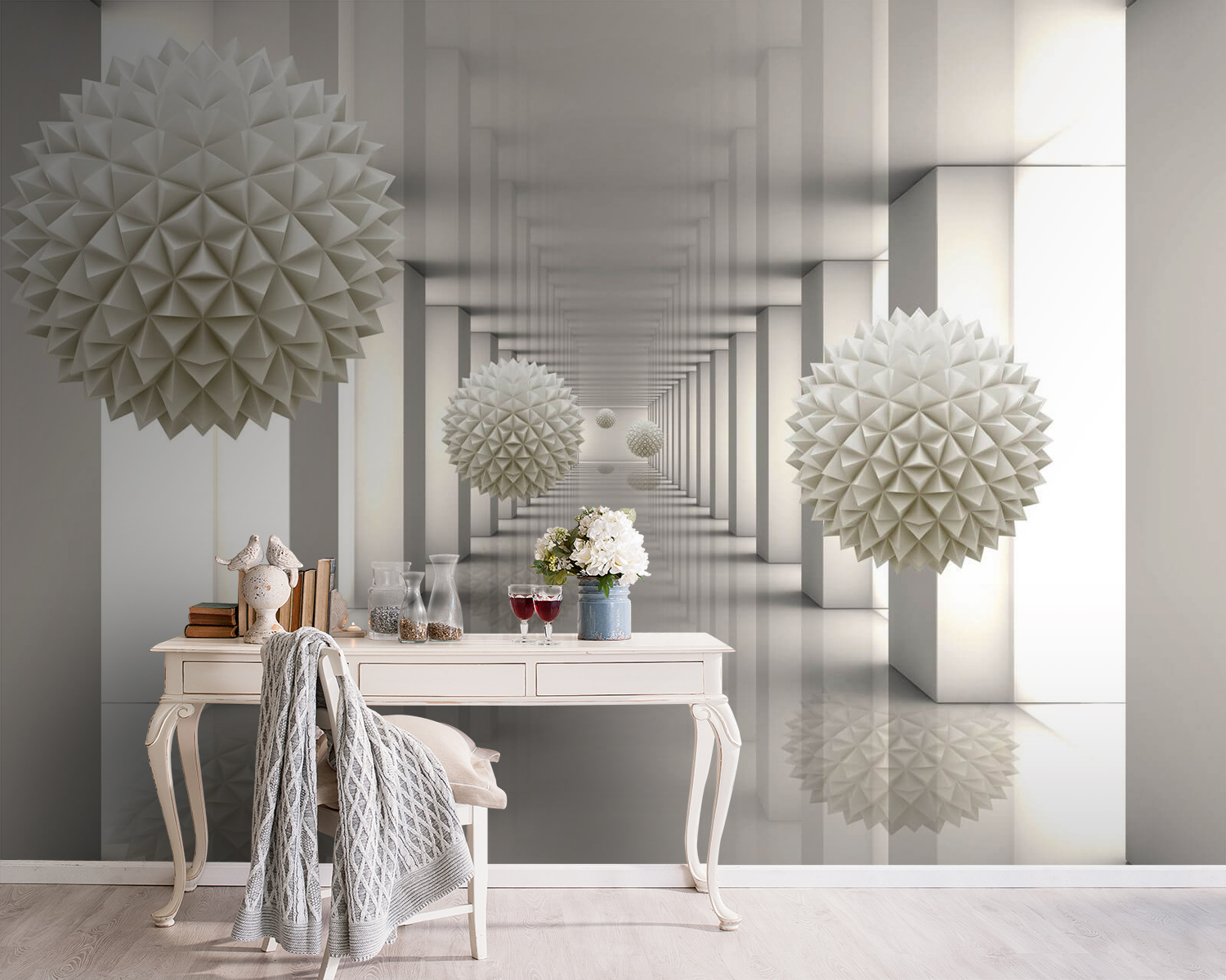 Φανταστείτε να μπαίνετε σε έναν κόσμο όπου η τέχνη και η γεωμετρία συναντιούνται. Αυτό ακριβώς κάνει αυτή η τοιχογραφία “Λευκή σφαίρα με τρίγωνα” – μεταμορφώνει το δωμάτιό σας σε μια κομψή γκαλερί. Αυτά τα τρισδιάστατα σχήματα ξεπροβάλλουν σαν να είναι έτοιμα να σας υποδεχτούν, πυροδοτώντας συζητήσεις και ίσως ακόμη και εμπνέοντας μερικές ονειρικές ονειροπολήσεις. Ιδανική για όποιον έχει βαρεθεί τους βαρετούς τοίχους και θέλει μια πινελιά μοντέρνας, καλλιτεχνικής ατμόσφαιρας. Είναι σαν να δίνετε στο χώρο σας μια μίνι ανακαίνιση χωρίς να σηκώσετε ούτε ένα σφυρί – μόνο καθαρή οπτική απόλαυση! Επιπλέον, προσδίδει μια εκλεπτυσμένη ατμόσφαιρα χωρίς να είναι πολύ εντυπωσιακή. Ιδανικό για να κάνετε το δωμάτιό σας να αξίζει το Instagram!