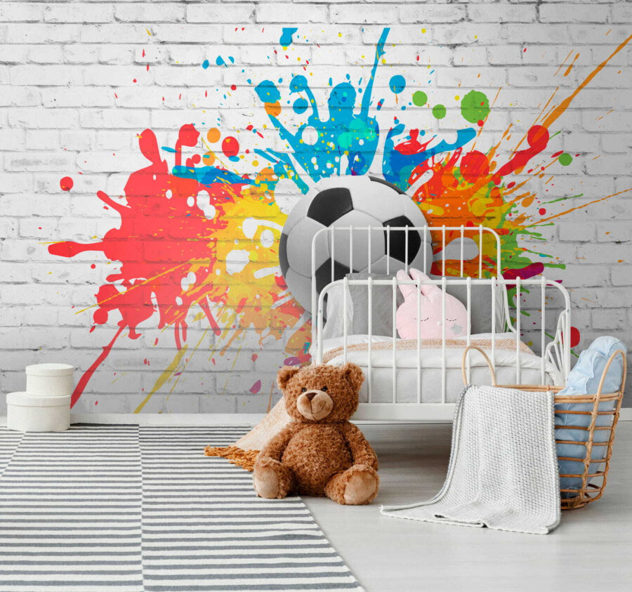 Φανταστείτε αυτό – μια ζωηρή πανδαισία χρωμάτων που εκρήγνυται σε έναν λευκό τοίχο από τούβλα, και στη μέση, μια κλασική ασπρόμαυρη μπάλα ποδοσφαίρου. Είναι σαν κάποιος να πήρε το πιο συναρπαστικό γκολ του κόσμου και να το πάγωσε ακριβώς στο σαλόνι σας. Ιδανική για το δωμάτιο ενός παιδιού, αυτή η τοιχογραφία έχει όλη την ενέργεια ενός πλήθους σε ένα γήπεδο συγκεντρωμένη σε έναν μόνο τοίχο. Οι τολμηρές αποχρώσεις ξεχωρίζουν από τη μονόχρωμη μπάλα, δημιουργώντας αντίθεση που είναι παιχνιδιάρικη και εντυπωσιακή. Είναι η τρισδιάστατη μαγεία που ζωντανεύει το παιχνίδι! Φανταστείτε τον ενθουσιασμό στο πρόσωπο του παιδιού σας όταν μπαίνει μέσα και βλέπει αυτό – ένα καθημερινό σκηνικό για τα όνειρά του να πετύχει το νικητήριο γκολ. Είτε παίζουν είτε απλά αράζουν, αυτή η τοιχογραφία δημιουργεί το τέλειο σκηνικό.