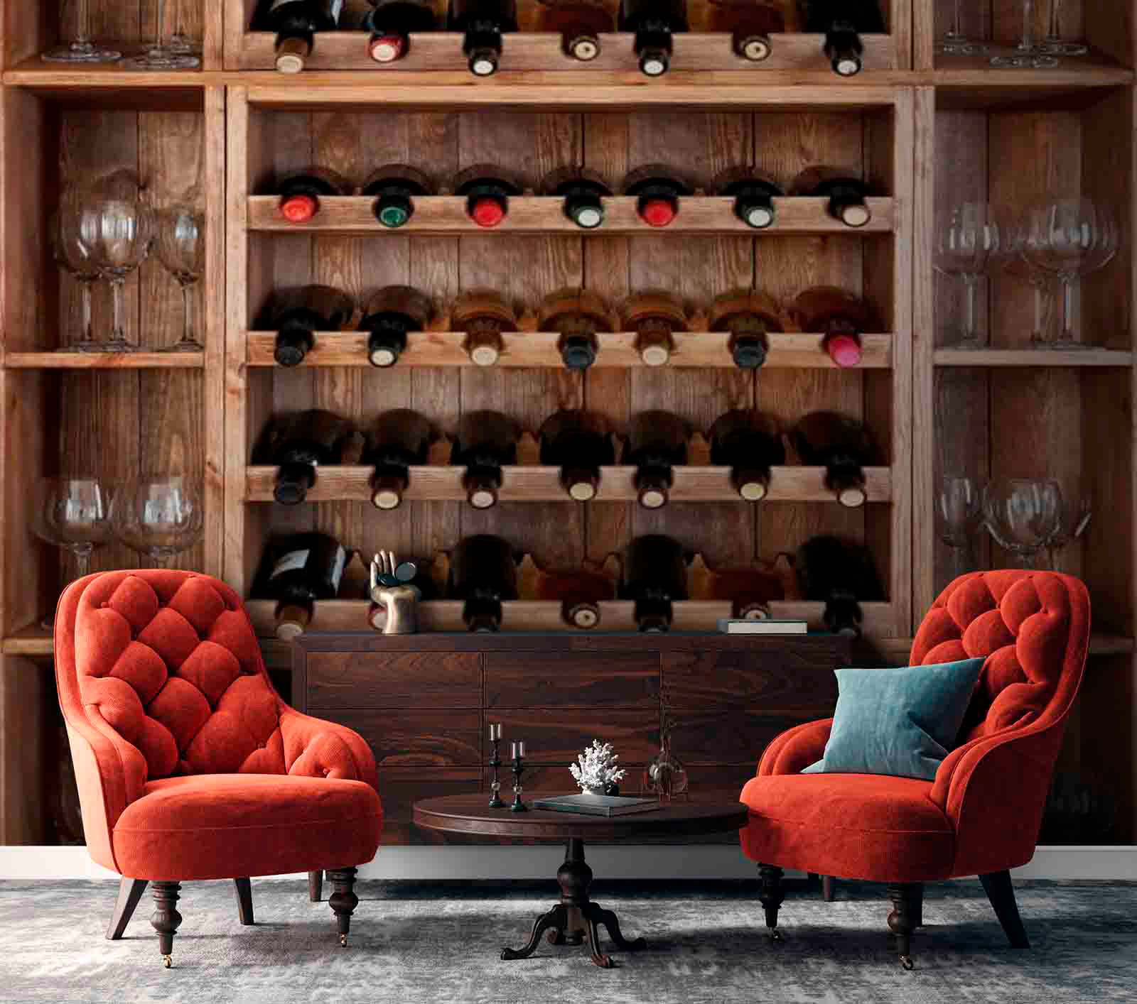 Ταπετσαρίες Μπουκάλια και ποτήρια κρασιού στα ράφια. (Κωδικός προϊόντος: u65213)