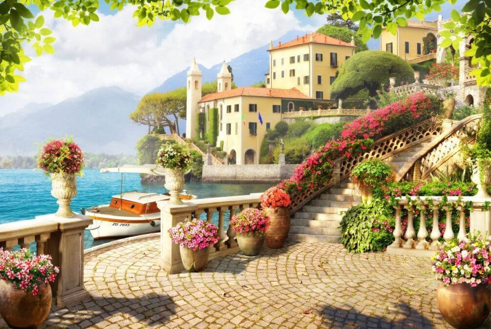 Φανταστείτε να ξυπνάτε κάθε μέρα με αυτή τη γοητευτική θέα. Το “Ταπετσαρίες Pot with Pink Flowers” είναι σαν μια μίνι-διακοπή για τους τοίχους σας. Πρόκειται για αυτά τα φωτεινά άνθη σε ρουστίκ γλάστρες, που παρακαλούν να τα θαυμάσετε. Η σκηνή μοιάζει βγαλμένη από παραμύθι, έτσι δεν είναι; Φανταχτερές σκάλες, ηλιόλουστες στέγες και μια γαλήνια λίμνη κάνουν αυτό το έργο ιδανικό για να δώσετε στο δωμάτιό σας μια ανανέωση.