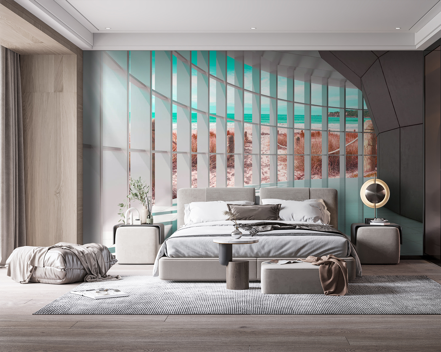 Φανταστείτε να μπαίνετε σε ένα δωμάτιο λουσμένο στο ζεστό φως του ήλιου, όπου ο γαλήνιος γαλάζιος ωκεανός σας υποδέχεται μέσα από κομψά, μοντέρνα παράθυρα. Αυτό ακριβώς θα έχετε με την τοιχογραφία “Sunlit Room with Ocean View”. Δεν είναι απλώς μια τοιχογραφία – είναι μια μίνι-διακοπή για τους τοίχους σας! Ιδανική για να προσθέσετε μια πινελιά παράκτιας γαλήνης σε κάθε χώρο. Είτε πρόκειται για το σαλόνι σας είτε για ένα χώρο εργασίας, αυτό το εκπληκτικό τρισδιάστατο σχέδιο σας κάνει να αισθάνεστε σαν να βρίσκεστε ακριβώς εκεί στην παραλία. Μπορείτε σχεδόν να ακούσετε τα κύματα, σωστά; Βυθιστείτε σε αυτή τη θέα και αφήστε ένα κομμάτι του ωκεανού να ηρεμήσει τη μέρα σας. Όμορφη και χαλαρωτική, θα κάνει το σπίτι σας να μοιάζει με παραθαλάσσιο παράδεισο. 🌊🌞