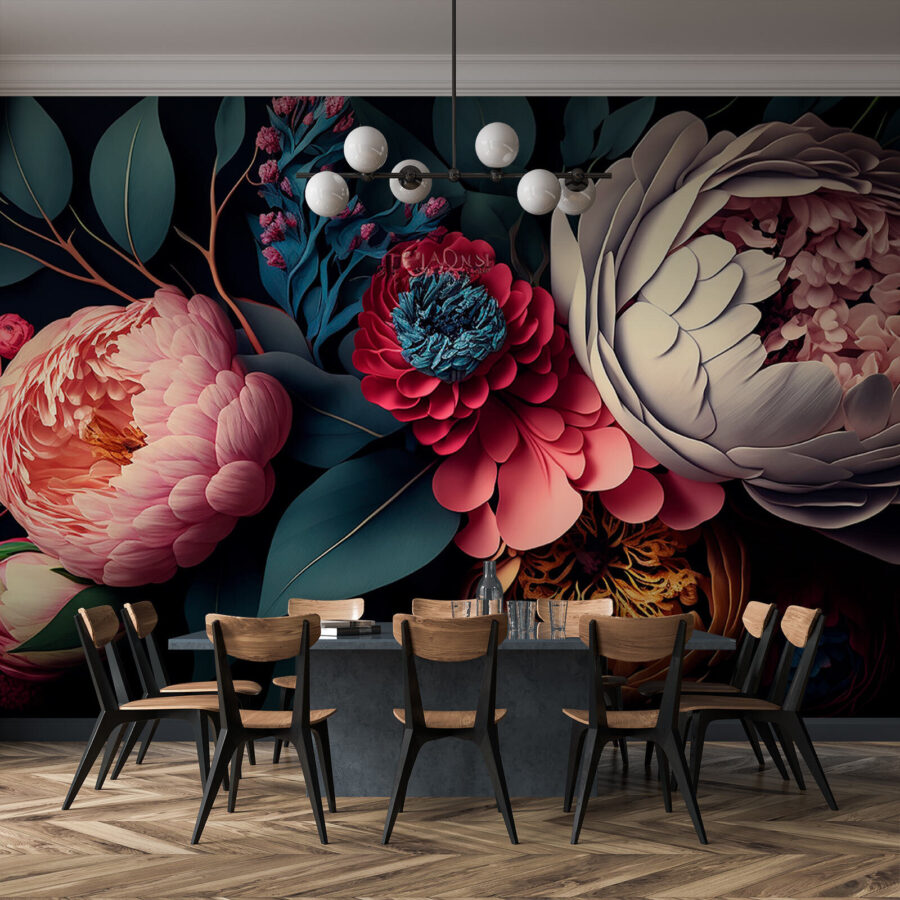 Θέλατε ποτέ να φέρετε τον ρομαντισμό και την αφθονία ενός καλοκαιρινού κήπου στο σαλόνι σας; Η τοιχογραφία “Elegant Bouquet of Vibrant Blossoms” σας καλύπτει! Έχει αυτές τις απίστευτες παιώνιες και άλλα λουλούδια που ξεπηδούν από τον τοίχο, μοιάζοντας σαν να έχουν ζωγραφιστεί από έναν ονειροπόλο καλλιτέχνη με αγάπη για τη φύση. Τα χρώματα είναι τόσο πλούσια και βαθιά, που μπορείτε σχεδόν να μυρίσετε το μεθυστικό άρωμα των λουλουδιών (σχεδόν). Φανταστείτε να βυθίζεστε στην αγαπημένη σας καρέκλα, με ένα ζεστό φλιτζάνι τσάι στο χέρι, και να περιβάλλεστε από αυτή την εκπληκτική ανθοφορία. Είναι σαν να μπαίνετε σε έναν μυστικό κήπο – μόνο που βρίσκεται στο σπίτι σας! Ιδανικό για όποιον θέλει να δώσει λίγη ζωή (και τέχνη) στο χώρο του. Είτε διακοσμείτε την κρεβατοκάμαρά σας, το σαλόνι ή ακόμα και μια ζεστή γωνιά ανάγνωσης, αυτή η τοιχογραφία μεταμορφώνει κάθε δωμάτιο σε μια βοτανική χώρα θαυμάτων. Κάθε ματιά υπόσχεται μια νέα λεπτομέρεια που θα τραβήξει το βλέμμα σας και θα σας φτιάξει τη διάθεση. Είναι απλά… μαγευτική.