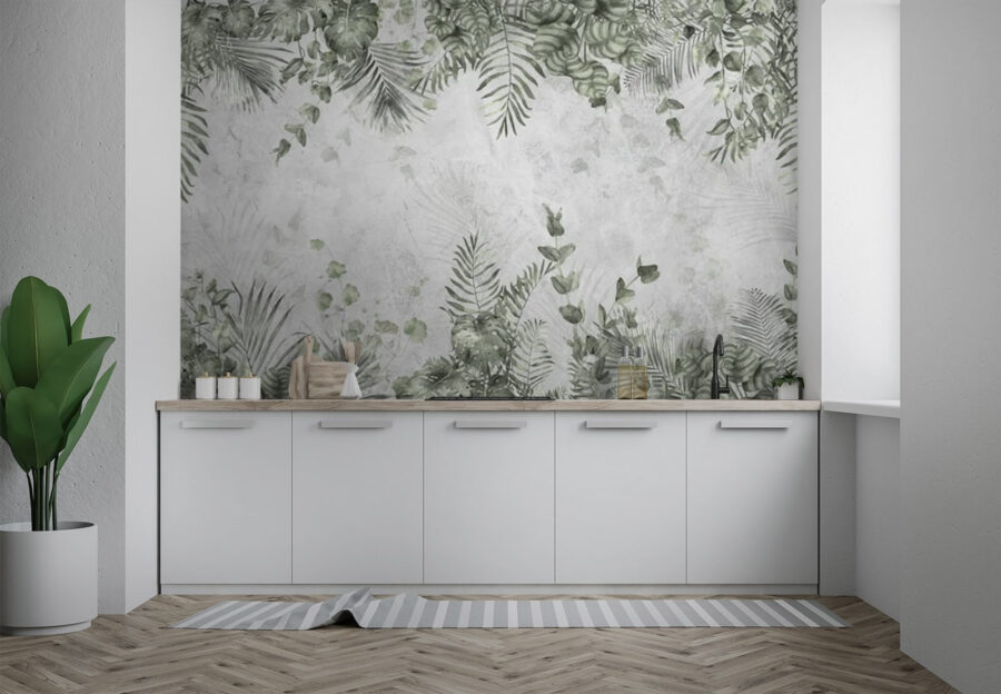Μεταμορφώστε το χώρο σας σε μια καταπράσινη όαση με αυτή την εκπληκτική τοιχογραφία με τροπικά φύλλα σε ένα υπέροχα απαλό φόντο. Φανταστείτε να μπαίνετε σε ένα δωμάτιο που μοιάζει με ένα γαλήνιο καταφύγιο τροπικού δάσους. τα πράσινα και οι λεπτές υφές προσκαλούν μια ηρεμιστική ατμόσφαιρα που απλά σας κάνει να θέλετε να βγάλετε τα παπούτσια σας και να χαλαρώσετε. Ιδανικό για ένα άνετο σαλόνι ή ακόμη και για ένα κομψό γραφείο – γιατί ποιος δεν θέλει ένα άγγιγμα της φύσης ενώ αλέθει στη δουλειά; Είναι σαν να φέρνετε τον εξωτερικό χώρο μέσα, χωρίς τα ενοχλητικά ζωύφια. Ένα statement κομμάτι που αισθάνεται φρέσκο και αναζωογονητικό, μπορεί να εμπνεύσει ονειροπολήσεις για αμμώδεις παραλίες και απαλές αύρες. Είτε φιλοξενείτε φίλους είτε απολαμβάνετε ένα ήσυχο βράδυ, αυτή η τοιχογραφία δημιουργεί μια ατμόσφαιρα ζεστή, φιλόξενη και λίγο μαγική. Προχωρήστε λοιπόν, αφήστε αυτές τις τροπικές δονήσεις να ρέουν!