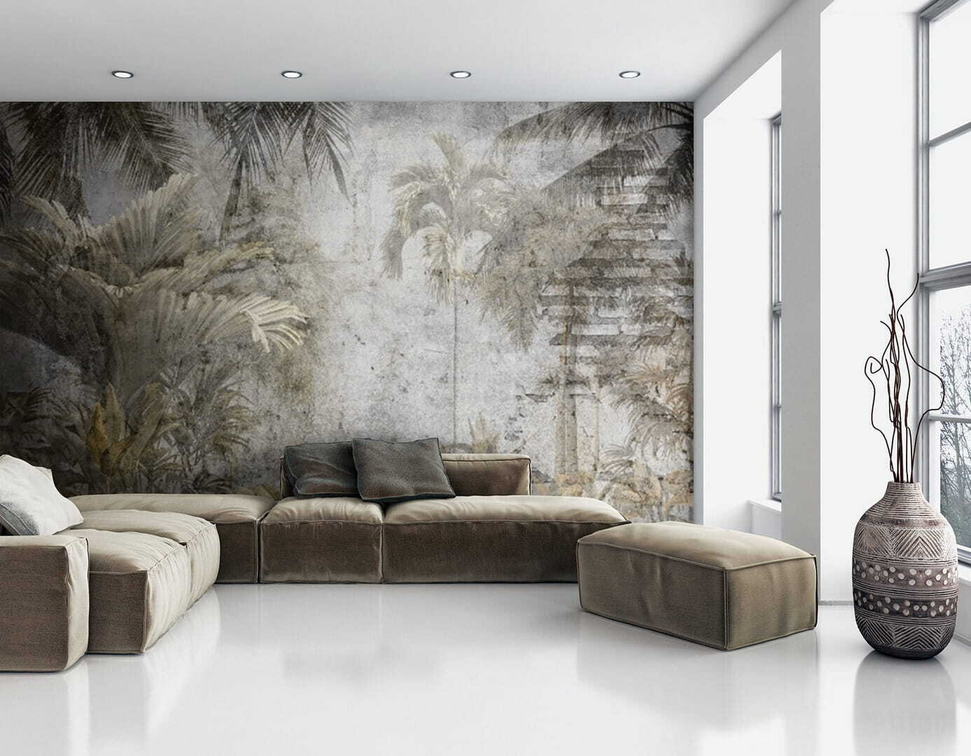 Φανταστείτε να μπαίνετε σε έναν καταπράσινο τροπικό παράδεισο μέσα στο σαλόνι σας. Αυτό το “Ταπετσαρίες Tropical artwork with palm trees” φέρνει τη ζωντανή ζούγκλα σε εσάς – δεν απαιτείται αεροπορικό εισιτήριο! Οι φοίνικες λικνίζονται απαλά σε ένα αεράκι που μπορείτε σχεδόν να αισθανθείτε, ενώ τα πλούσια πράσινα και τα βαθιά καφέ χρώματα δημιουργούν μια ζεστή, φυσική ατμόσφαιρα που είναι ανακουφιστική αλλά και αναζωογονητική. Ιδανική για όποιον αγαπάει ένα άγγιγμα φύσης, αυτή η τοιχογραφία σας μεταφέρει σε ένα ονειρεμένο οικολογικό καταφύγιο. Είτε ονειροπολείτε είτε εργάζεστε από το σπίτι, είναι μια καθημερινή απόδραση στην ηρεμία. Επιπλέον, ταιριάζει άψογα σε δημοφιλείς κατηγορίες όπως οι τοιχογραφίες Jungle Tree Ταπετσαρίες και Popular Ταπετσαρίες, καθιστώντας την μια μοντέρνα αλλά και διαχρονική επιλογή. Φανταστείτε να πίνετε τον πρωινό σας καφέ, περιτριγυρισμένοι από εξωτικά φυτά – δεν είναι απλώς διακόσμηση, είναι μια εμπειρία.