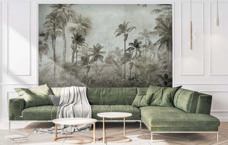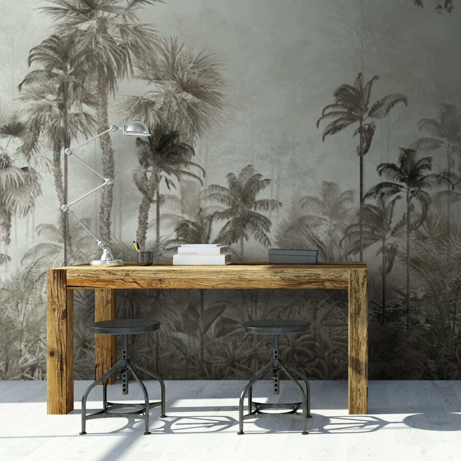Μεταμορφώστε οποιοδήποτε δωμάτιο σε ένα ήσυχο καταφύγιο με αυτή την εκπληκτική ταπετσαρία που απεικονίζει μια ομάδα φοινικόδεντρα που ξεπροβάλλουν μέσα από ένα ομιχλώδες δάσος. Είναι σαν να μπαίνετε σε μια ονειρική ζούγκλα χωρίς να φεύγετε από το σπίτι σας. Οι απαλές αποχρώσεις και η ομιχλώδης ατμόσφαιρα δημιουργούν ένα ήρεμο, χαλαρωτικό περιβάλλον, ιδανικό για χαλαρά απογεύματα ή ζεστές βραδιές. Φανταστείτε να χαλαρώνετε με ένα βιβλίο ή να απολαμβάνετε το αγαπημένο σας ποτό, ενώ νιώθετε αγκαλιασμένοι από τη φύση. Χωρίς να ξεχνάμε ότι είναι και ένα καλό θέμα για συζήτηση. Οι καλεσμένοι σας σίγουρα θα ρωτήσουν από πού προέρχεται αυτός ο γαλήνιος παράδεισος! Αγκαλιάστε την άγρια πλευρά της διακόσμησης και αφήστε αυτή την ταπετσαρία να σας μεταφέρει.