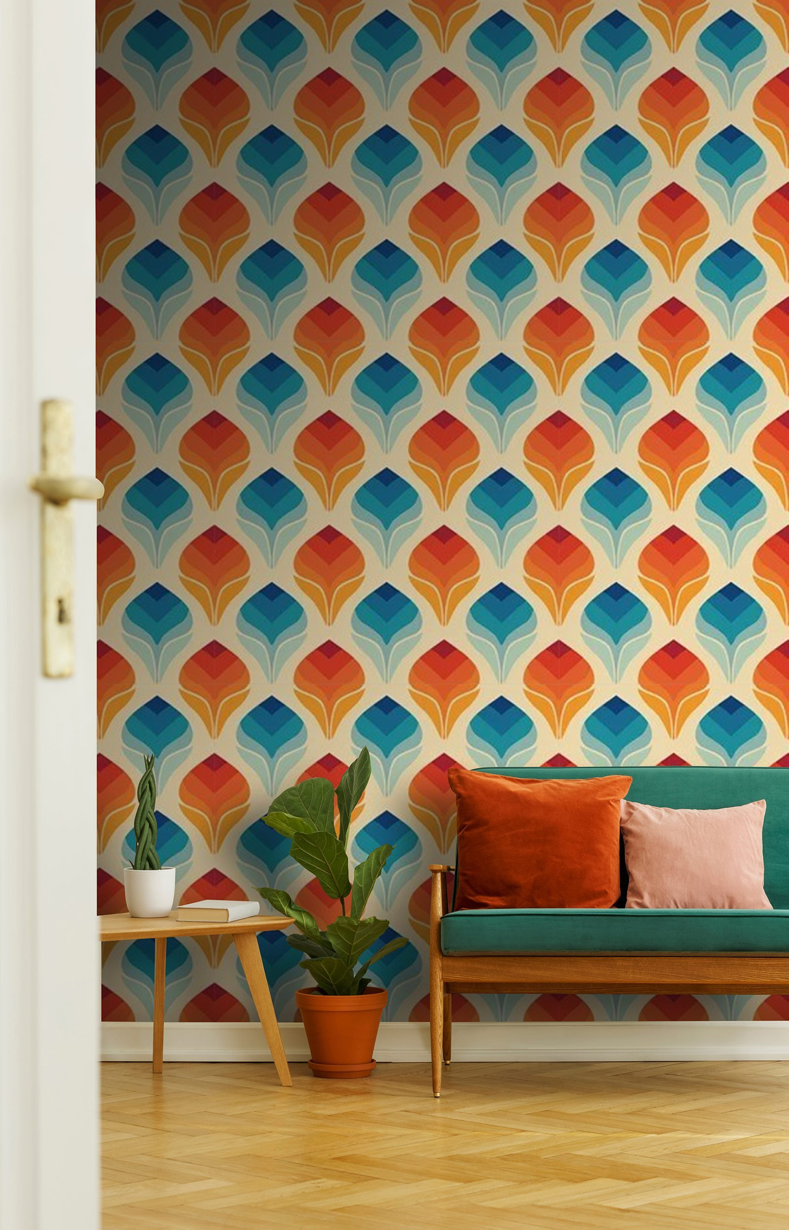 Μεταμορφώστε οποιονδήποτε χώρο με αυτή τη ζωντανή τοιχογραφία τοίχου με έναν παιχνιδιάρικο χορό πορτοκαλί και μπλε φύλλων. Είναι σαν να φέρνετε ένα κομμάτι από τους τροπικούς στο σαλόνι σας. Φανταστείτε να βυθίζεστε στην αγαπημένη σας καρέκλα, με μια κούπα καφέ στο χέρι, ενώ αυτό το πολύχρωμο σκηνικό ψιθυρίζει ζεστασιά και χαρά. Είναι ιδανικό για να δημιουργήσετε μια ζεστή γωνιά ή να δώσετε ενέργεια σε μια βαρετή γωνιά – πραγματικά έναυσμα για συζήτηση. Και ας είμαστε ειλικρινείς, ποιος δεν θα ήθελε να αισθάνεται σαν να βρίσκεται σε διακοπές κάθε μέρα; Αυτή η τοιχογραφία έχει αυτή τη μαγεία. Ιδανική για μια γρήγορη, κομψή ανανέωση!