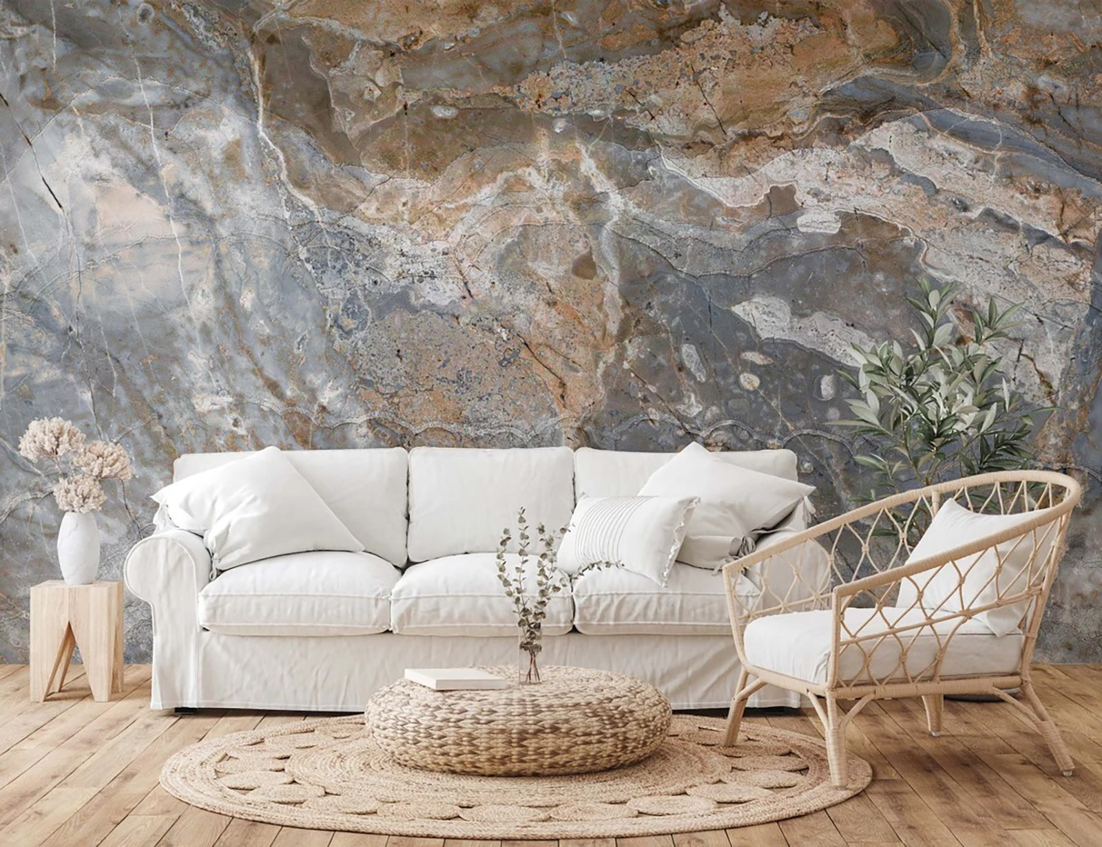 Μεταμορφώστε το χώρο σας σε ένα ζεστό καταφύγιο με αυτή την εκπληκτική τοιχογραφία τοίχου, με μια στροβιλώδη μαρμάρινη υφή σε ζεστούς γήινους τόνους. Φανταστείτε να μπαίνετε σε ένα δωμάτιο όπου οι τοίχοι μοιάζουν περισσότερο με ένα γαλήνιο τοπίο παρά με απλή γυψοσανίδα. Είναι σαν να έχετε την ομορφιά της φύσης τυλιγμένη γύρω σας, προσκαλώντας τη χαλάρωση.