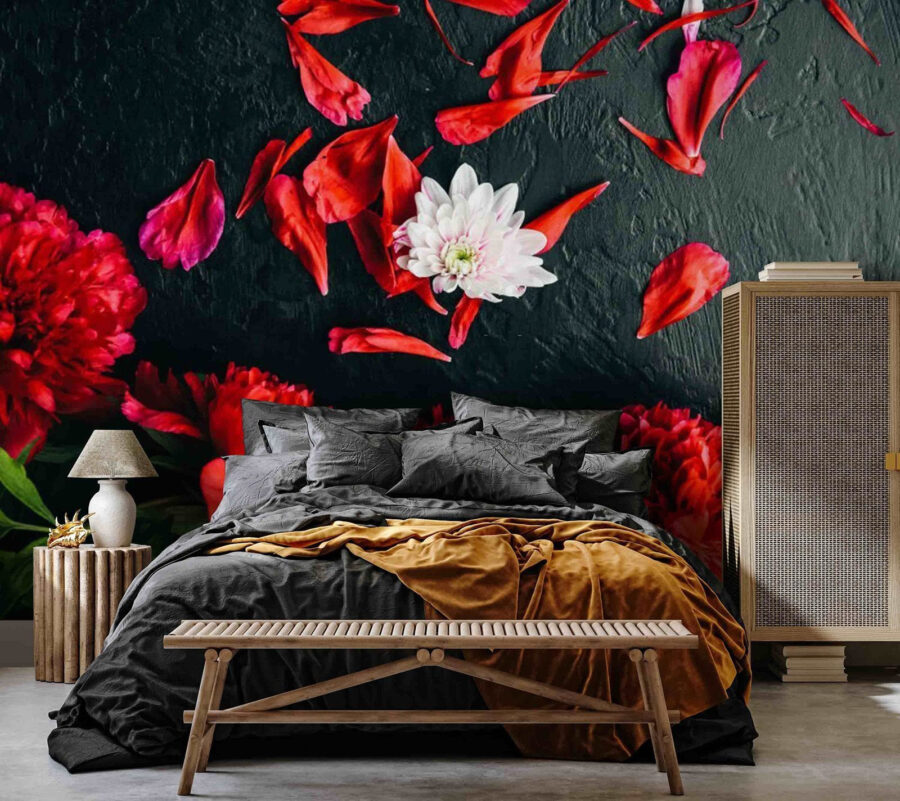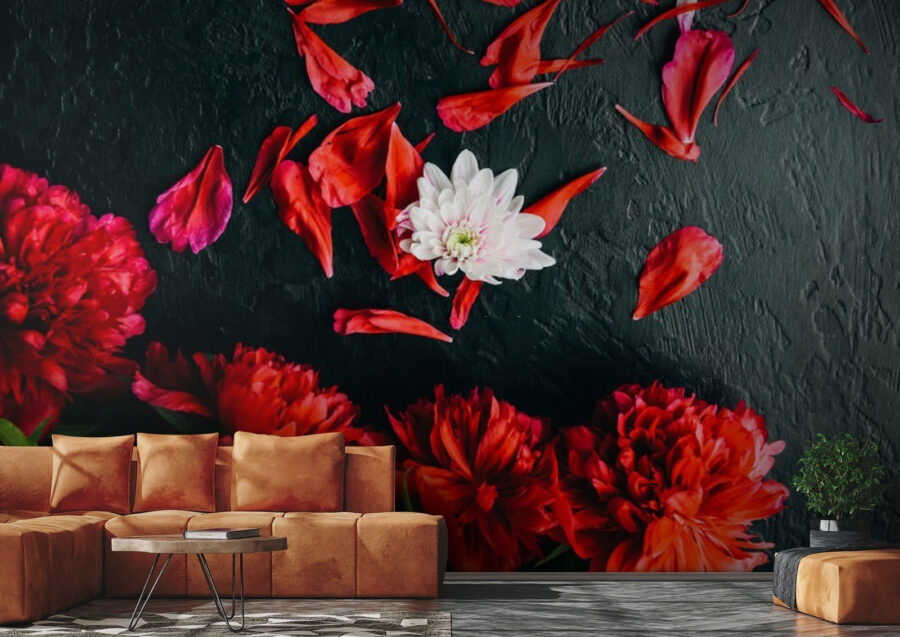 Transform your space with this stunning mural featuring a vibrant group of red peonies resting on a chic black backdrop. It’s like bringing a garden indoors—sans the pesky bugs! Imagine waking up to these luscious blooms every day, their bold colors sparking joy and warmth in any room. The contrast of fiery petals against a dark surface is simply striking; it’s a little like sipping coffee in a cozy café, where the atmosphere wraps around you like a hug. Perfect for a living room or perhaps a trendy office; who wouldn’t want to work surrounded by such beauty? With this mural, you’re not just decorating; you’re creating an experience. Every glance will have you feeling a tad more inspired!