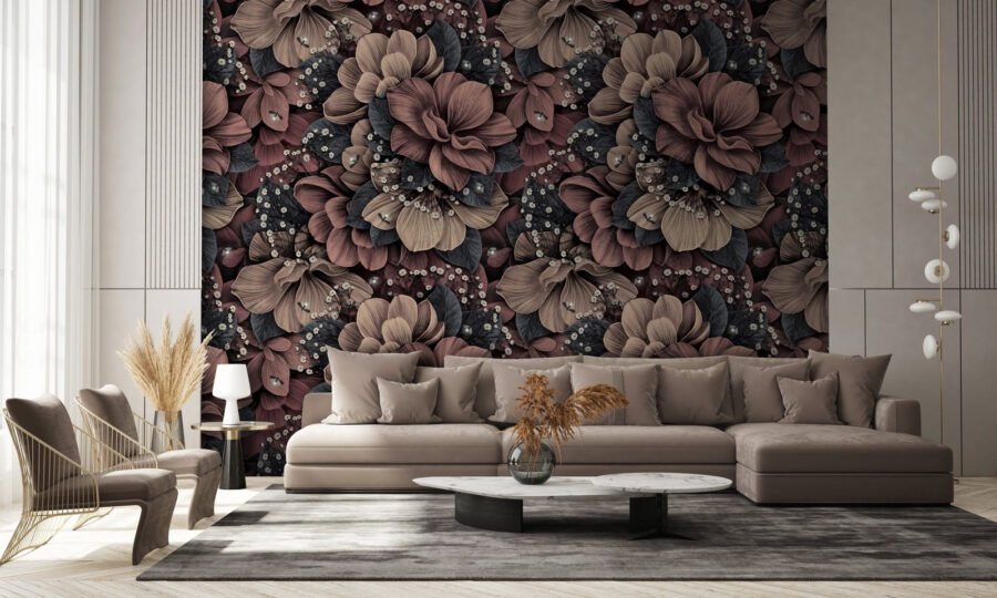 Φανταστείτε το στο σαλόνι σας: ένα κομψά λεπτομερές φλοράλ μοτίβο που σας κάνει να θέλετε να το κοιτάτε όλη μέρα. Αυτή η τοιχογραφία έχει ένα ζεστό, περίπλοκο σχέδιο που μοιάζει σχεδόν ζωντανό. Τα πλούσια χρώματα αναμειγνύονται όμορφα, δημιουργώντας μια αίσθηση βάθους που σας τραβάει μέσα. Είναι σαν να έχετε έναν καταπράσινο κήπο στον τοίχο σας, χωρίς την ανάγκη για πότισμα.