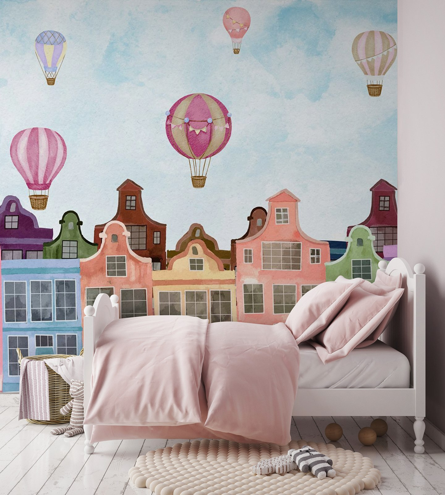 Κάθε ματιά σε αυτή την ταπετσαρία μπορεί να σας μεταφέρει σε μια μικρή απόδραση. Φανταστείτε να πίνετε τον καφέ σας ενώ αυτά τα ζωντανά κτίρια σας κοιτάζουν χαρούμενα, κάνοντας τις συνηθισμένες πρωινές ώρες να νιώθουν ξεχωριστές. Ή φανταστείτε πώς αυτή η ομορφιά θα μπορούσε να εμπνεύσει ιστορίες κατά τη διάρκεια οικογενειακών συγκεντρώσεων – ο καθένας έχει τη δική του περιπέτεια με αερόστατα. Με τον γοητευτικό συνδυασμό χρωμάτων, αυτή η ταπετσαρία θα σας ανεβάσει το κέφι χωρίς κόπο, όπως τα αερόστατα που αιωρούνται σε μια ηλιόλουστη μέρα. Ιδανική για μια ζεστή γωνιά ή για εκείνο το τοίχο που νιώθετε λίγο μοναχικό, δεν είναι απλώς διακόσμηση — είναι μια εμπειρία που περιμένει να ζήσετε.