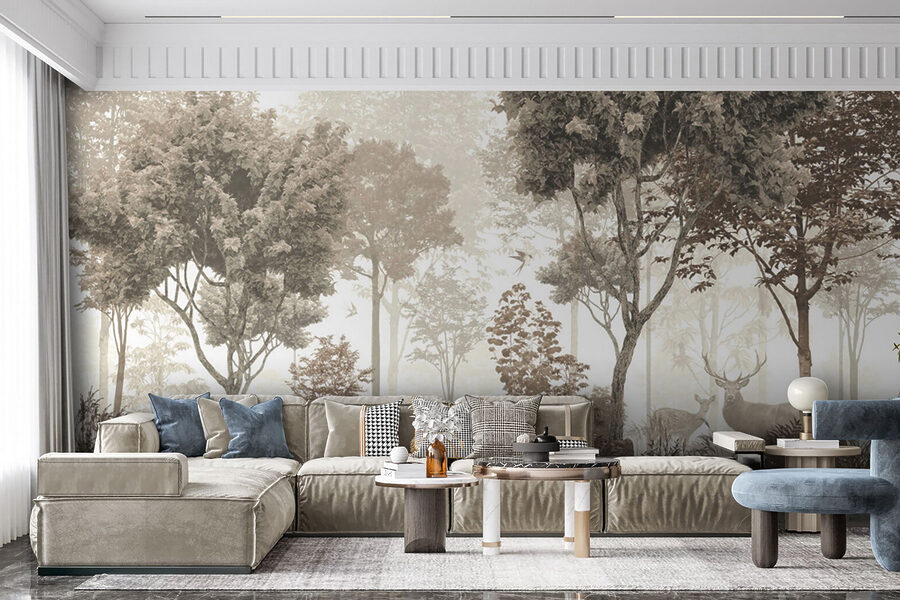 Φανταστείτε το στο σαλόνι σας ή ακόμα και σε μια ζεστή γωνιά ανάγνωσης – είναι βέβαιο ότι θα σας προκαλέσει γαλήνια, ονειρική ατμόσφαιρα. Επιπλέον, αυτά τα απαλά, ουδέτερα χρώματα είναι τόσο ηρεμιστικά. Αισθάνεστε σαν μια βαθιά ανάσα φρέσκου δασικού αέρα. Είτε είστε λάτρης της φύσης είτε κάποιος που θέλει απλώς να προσθέσει μια ήρεμη πινελιά στο χώρο του, αυτή η τοιχογραφία κάνει τη δουλειά της υπέροχα.