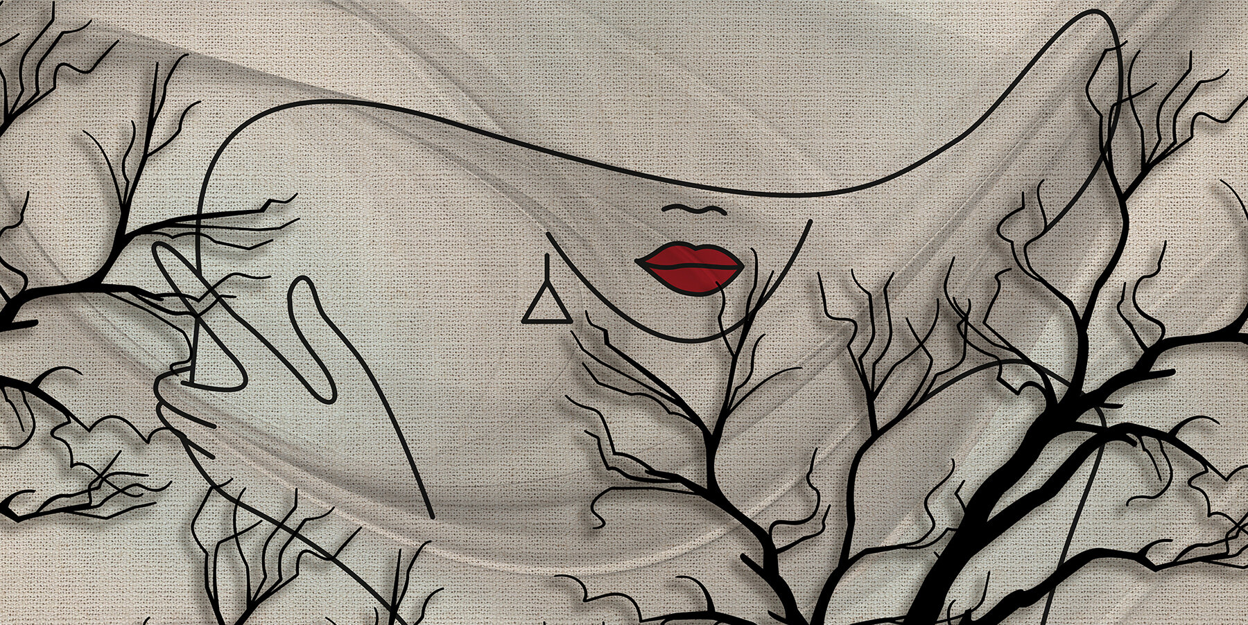 Ταπετσαρίες Σχέδιο μιας γυναίκας’s πρόσωπο και ένα δέντρο