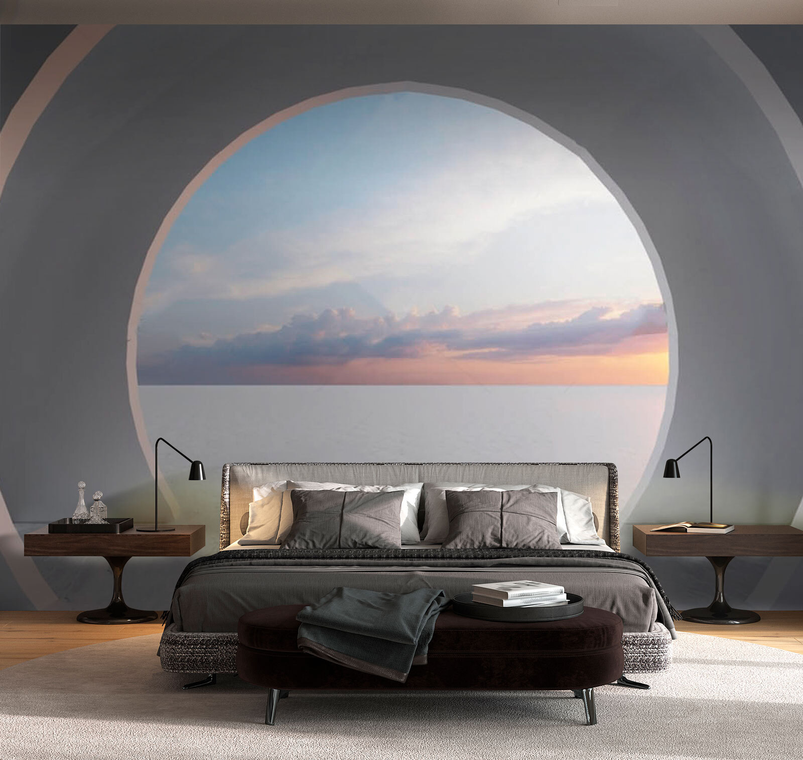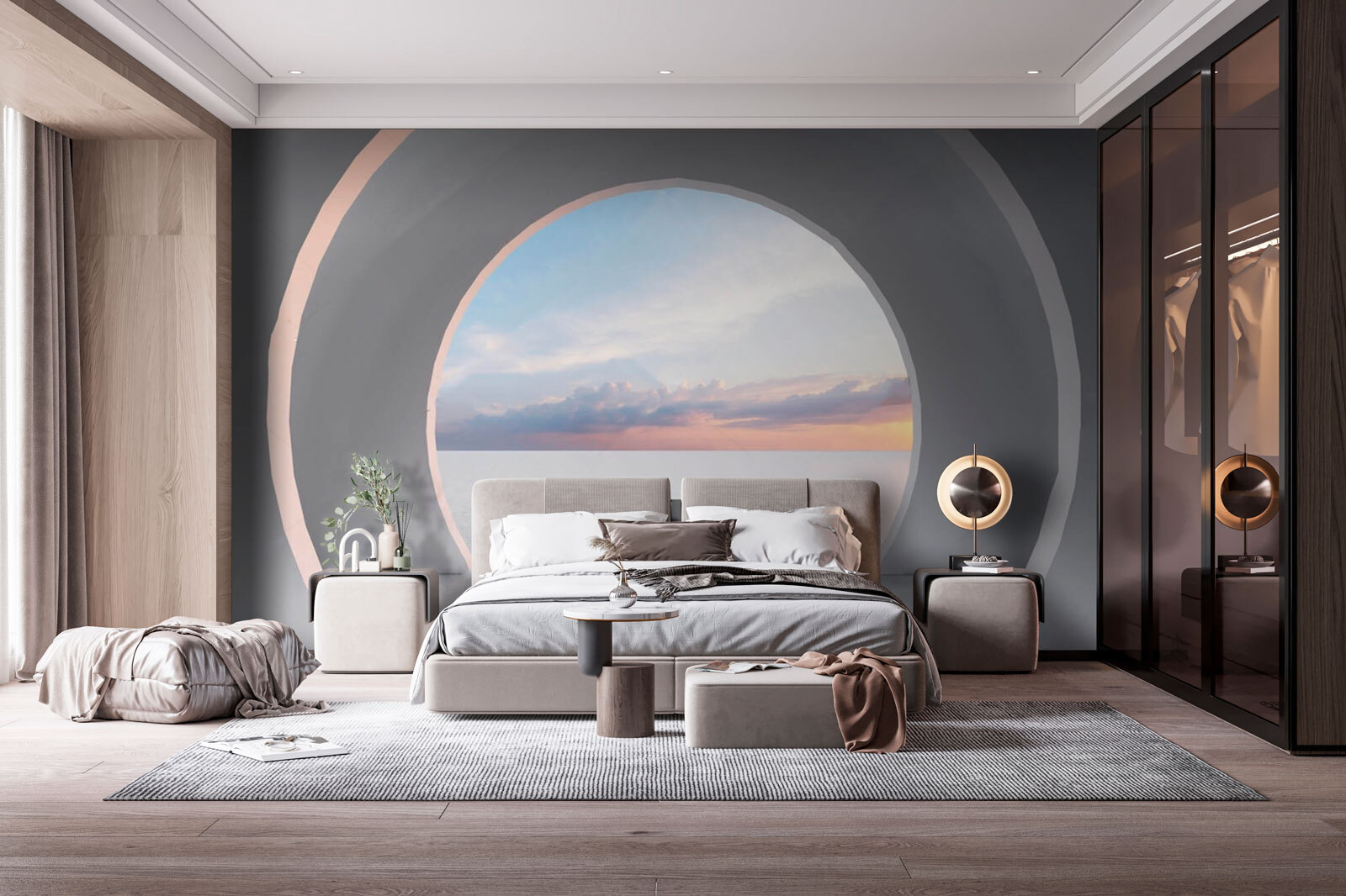 Μπείτε σε έναν κόσμο ονειρικών δυνατοτήτων με αυτή την τοιχογραφία, “Λευκό δωμάτιο με κυκλική πόρτα”. Φανταστείτε τον χώρο σας να αισθάνεται πιο ευρύχωρος, σαν μια ευγενική πρόσκληση για εξερεύνηση. Τα απαλά χρώματα και οι καθαρές γραμμές χορεύουν παιχνιδιάρικα, δημιουργώντας μια γαλήνια ατμόσφαιρα που ψιθυρίζει χαλάρωση σε όποιον εισέρχεται. Φανταστείτε να πίνετε καφέ στο πρωινό φως, ατενίζοντας μέσα από αυτή τη στυλιζαρισμένη πόρτα έναν ορίζοντα γεμάτο δυνατότητες.