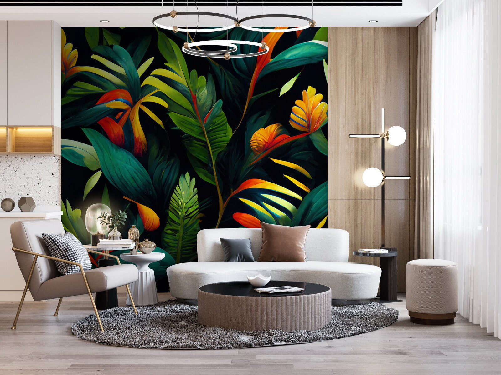 Μεταμορφώστε οποιοδήποτε δωμάτιο σε μια τροπική όαση με αυτές τις ζωντανές τοιχογραφίες. Φανταστείτε να μπαίνετε κάθε μέρα σε έναν καταπράσινο παράδεισο, όπου τα βαθιά πράσινα και οι εκρήξεις ζεστών χρωμάτων σας κάνουν να αισθάνεστε σαν να βρίσκεστε σε μόνιμες διακοπές. Το παιχνιδιάρικο μείγμα φύλλων και λουλουδιών φέρνει ζωή και ενέργεια στους τοίχους σας, δημιουργώντας μια χαρούμενη ατμόσφαιρα που κάνει ακόμα και τα πρωινά της Δευτέρας να φαίνονται πιο φωτεινά. Οι καλεσμένοι ίσως δυσκολευτούν να συγκεντρωθούν στη συζήτηση καθώς χάνονται σε αυτή τη βοτανική χώρα των θαυμάτων. Ιδανικό για ένα άνετο σαλόνι ή έναν ζωηρό χώρο γραφείου, είναι σαν να προσθέτετε ένα μικρό κομμάτι της φύσης στο σπίτι σας. Αγκαλιάστε τη χαρά της ζωής σε πλήρη άνθιση.