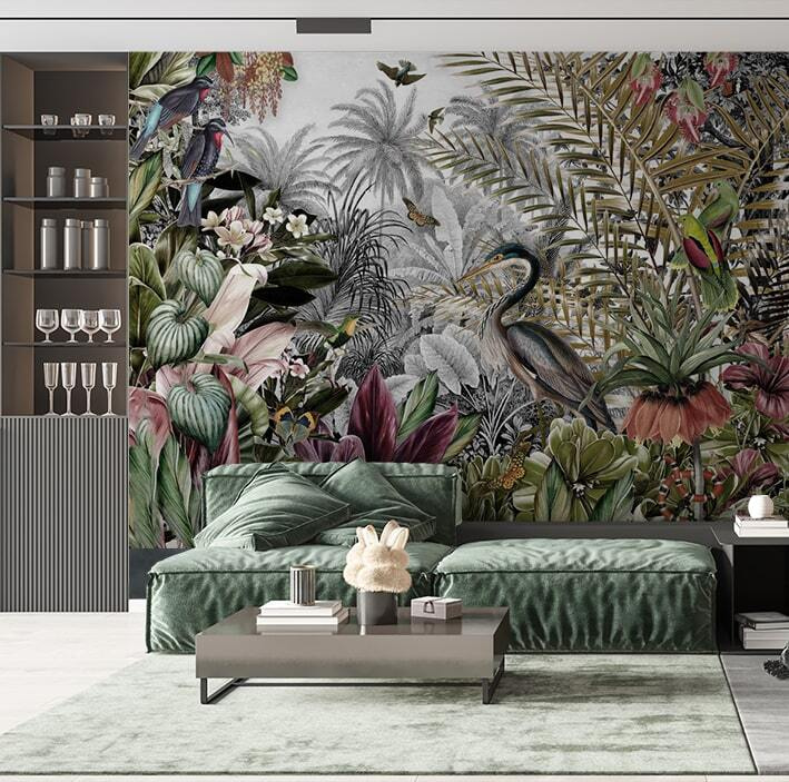 Τα πλούσια πράσινα και οι παιχνιδιάρικες αποχρώσεις των εξωτικών πλασμάτων δημιουργούν μια οπτική πανδαισία που προκαλεί χαρά. Είναι σαν να έχετε μια μίνι-διακοπή στους τοίχους σας. Οι φίλοι σας μπορεί να περάσουν ακόμη και για να το θαυμάσουν. Σοβαρά, ποιος δεν θα ήθελε να χαλαρώσει κάτω από τη σκιά αυτών των εικονογραφημένων φοινίκων; Συνολικά, αυτή η τοιχογραφία δεν είναι απλώς διακόσμηση- είναι μια ατμόσφαιρα που κάνει κάθε μέρα να μοιάζει λίγο πιο ξεχωριστή. Ποιος ξέρει, μπορεί να εμπνεύσει ακόμα και μια αυθόρμητη απόδραση!