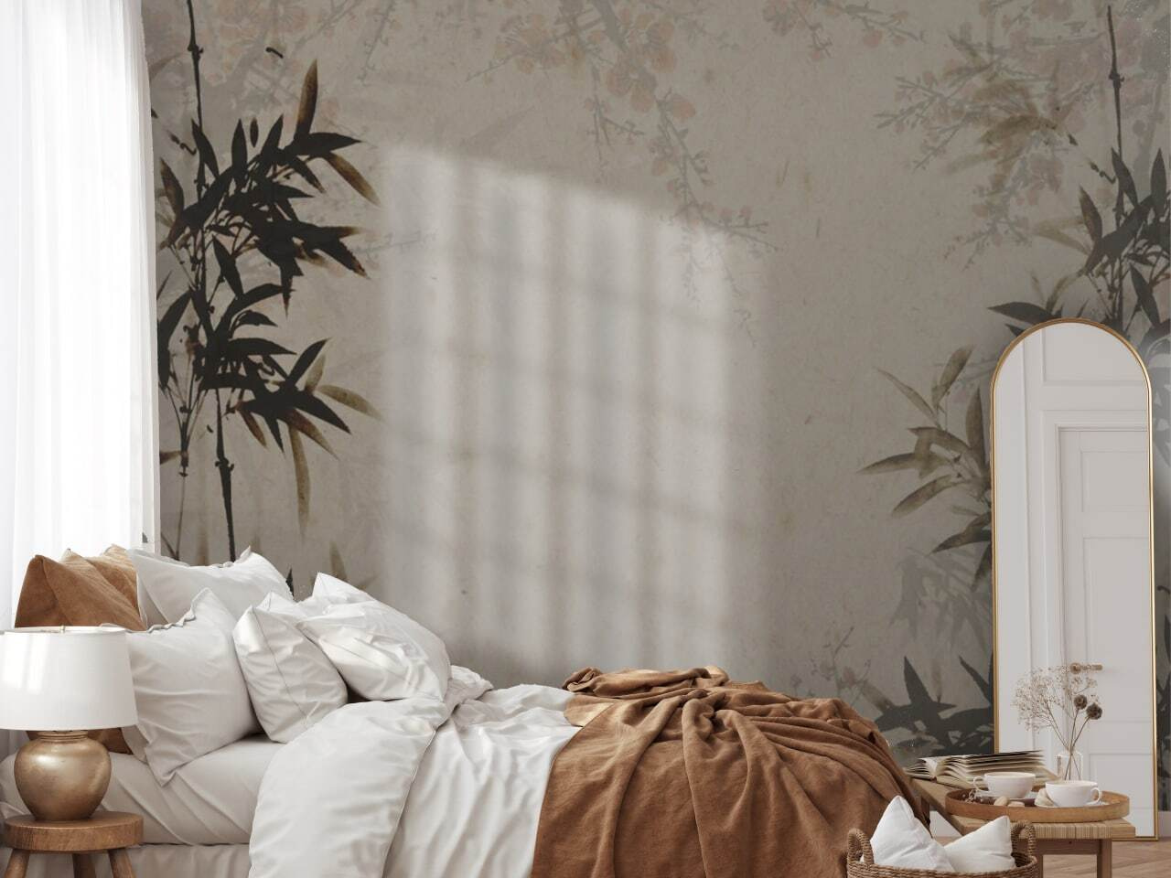 Έχετε έναν κενό τοίχο που ζητιανεύει για λίγη προσωπικότητα; Φανταστείτε να ατενίζετε αυτή την τοιχογραφία “Κομψή σιλουέτα μπαμπού σε περγαμηνή”. Είναι σαν να μπαίνετε σε έναν κήπο ζεν – χωρίς να χρειάζεται να τσουγκρίσετε! Οι σκούροι μίσχοι μπαμπού ρίχνουν τις διαχρονικές τους σκιές σε ένα απαλό φόντο που μοιάζει με περγαμηνή, δημιουργώντας μια ατμόσφαιρα που είναι τόσο ηρεμιστική όσο και ιντριγκαδόρικη και καλλιτεχνική.