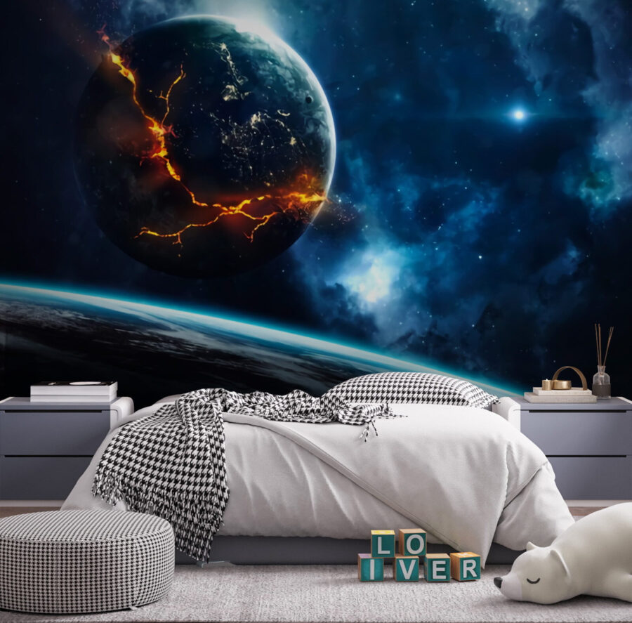 Εντάξει, φανταστείτε να ξυπνάτε κάθε μέρα μπροστά σε αυτή την εκπληκτική κοσμική σκηνή – πόσο ωραίο είναι αυτό; Η τοιχογραφία μας “Πλανήτης με φωτιά στο φόντο” φέρνει τη δραματική ομορφιά ενός γαλαξία κατευθείαν στο σαλόνι σας (ή στο γραφείο σας, ή όπου αλλού θέλετε να προσθέσετε μια πινελιά ουράνιου αέρα). Αυτή η τοιχογραφία δεν είναι απλώς εντυπωσιακά ζωντανή – μοιάζει σχεδόν ζωντανή με αυτόν τον φλογερό πλανήτη να τρίζει ενάντια στο βαθύ, μυστηριώδες μπλε του γαλαξία. Είναι σαν να έχετε ένα παράθυρο σε ένα άλλο σύμπαν, προκαλώντας θαυμασμό, περιέργεια και ίσως λίγο ονειροπόληση για μακρινές περιπέτειες. Είτε είστε λάτρης της αστρονομίας είτε απλά αγαπάτε την τολμηρή, μοναδική διακόσμηση, αυτό το κομμάτι είναι βέβαιο ότι θα προκαλέσει συζητήσεις. Οι καλεσμένοι σας μπορεί ακόμη και να νιώσουν μια πιο κοσμική σύνδεση. Και ας είμαστε ειλικρινείς, ποιος δεν θα μπορούσε να χρησιμοποιήσει λίγη περισσότερη από αυτή τη μαγεία στη ζωή του; Ιδανικό για όσους εκτιμούν την αχανή απεραντοσύνη του διαστήματος που προκαλεί δέος με μια πινελιά φωτιάς!