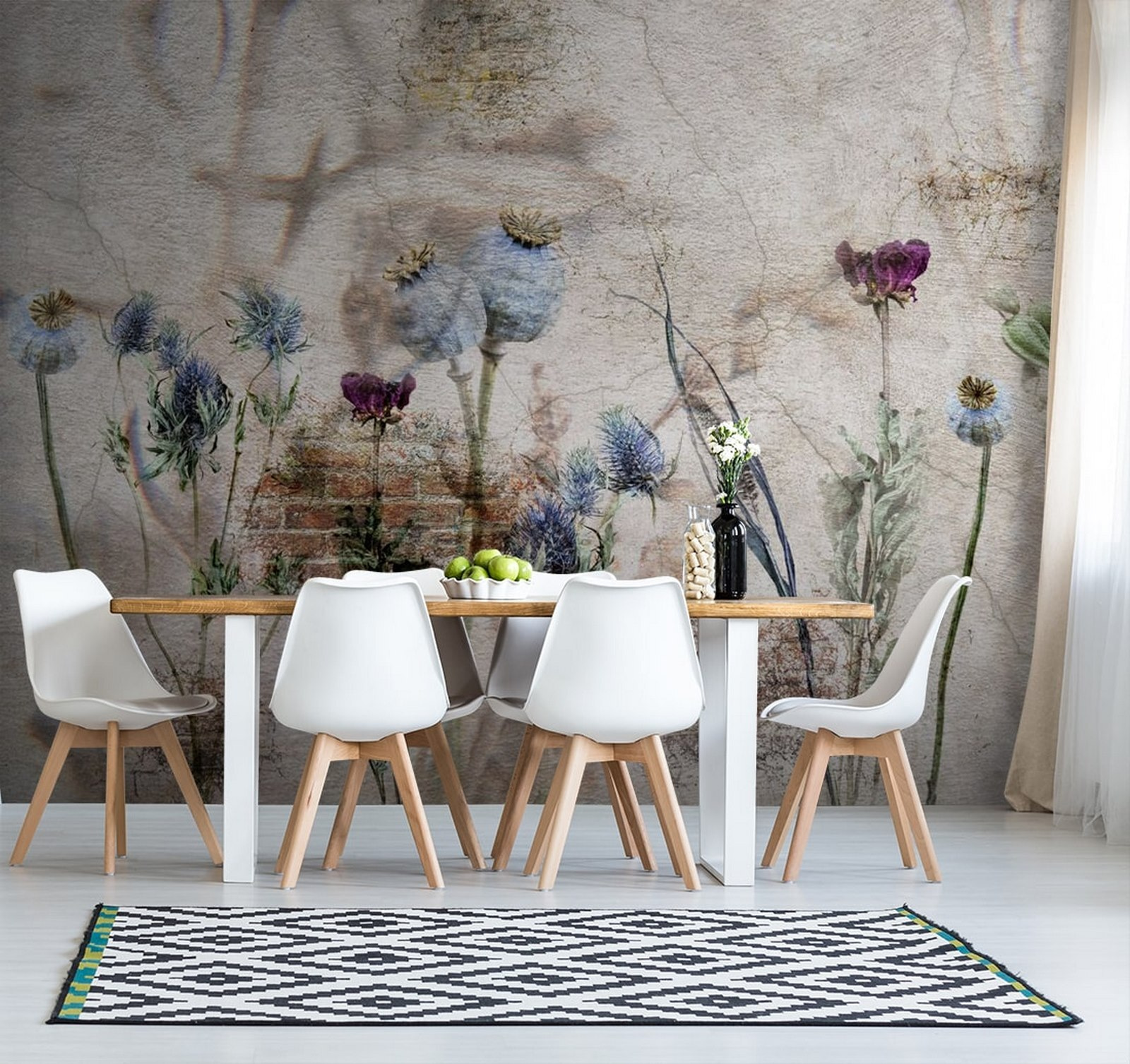 Μεταμορφώστε οποιονδήποτε χώρο με αυτή την εκπληκτική τοιχογραφία τοίχου με ένα βοτανικό κολάζ σε ένα όμορφα διαστρωματωμένο φόντο. Φανταστείτε να μπαίνετε σε ένα δωμάτιο όπου τα λεπτά άνθη χορεύουν απαλά σε ένα ψίθυρο vintage γοητείας. Τα ξεθωριασμένα χρώματα προκαλούν μια αίσθηση ηρεμίας, προσκαλώντας σας να κάνετε ένα διάλειμμα και να αναπνεύσετε βαθιά. Είναι σαν να φέρνετε έναν μικρό κήπο μέσα στο σπίτι, χωρίς όλο το πότισμα. Ιδανική για μια ζεστή γωνιά ή για τον γυμνό τοίχο που ζητά προσωπικότητα, αυτή η τοιχογραφία προσθέτει βάθος και ζεστασιά. Δεν είναι απλώς διακόσμηση, είναι μια διάθεση, μια δόνηση, μια διακριτική υπενθύμιση για να επιβραδύνετε και να εκτιμήσετε την καλλιτεχνία της φύσης.