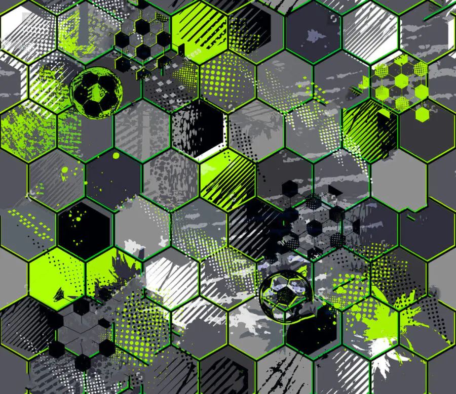 Το μοτίβο έχει αυτό το funky εξάγωνο με πιτσιλιές από πράσινο νέον και κομψό γκρι. Είναι σαν ένα γήπεδο ποδοσφαίρου να συγκρούεται με μοντέρνα τέχνη. Ιδανικό για όποιον αγαπάει μια δόση διασκέδασης και μια πινελιά στυλ στη διακόσμησή του. Δεν είναι απλώς ταπετσαρία – είναι μια δήλωση. Φανταστείτε το: ξυπνάτε, πιάνετε τον καφέ σας και παίρνετε αυτό το μικρό τράνταγμα ευτυχίας κάθε φορά που περνάτε από μπροστά του. Ένα εξαιρετικό μέσο συζήτησης για όλες εκείνες τις φορές που οι φίλοι έρχονται και ρωτούν: “Πού το βρήκες αυτό;”.