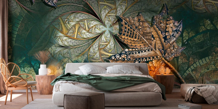 Φανταστείτε να μπαίνετε σε ένα δωμάτιο που μοιάζει με ένα άνετο δασικό καταφύγιο – αυτή η τοιχογραφία κάνει ακριβώς αυτό! Με τα ζωντανά φύλλα της να χορεύουν πάνω σε ένα πλούσιο, πολύχρωμο φόντο, είναι σαν η Μητέρα Φύση να αποφάσισε να διοργανώσει ένα μικρό πάρτι ακριβώς στον τοίχο σας. Τα περίπλοκα σχέδια σε κάθε φύλλο έχουν να πουν μια ιστορία, προσκαλώντας την περιέργεια οποιουδήποτε κοιτάξει προς το μέρος του. Φανταστείτε τον εαυτό σας να αράζει με ένα φλιτζάνι καφέ, θαυμάζοντας πώς τα χρώματα αλλάζουν με το φως κατά τη διάρκεια της ημέρας. Είναι το είδος της τοιχογραφίας που πυροδοτεί ονειροπολήσεις και κάνει κάθε χώρο να αισθάνεται ζωντανός – ιδανικό για όσους επιθυμούν ένα άγγιγμα φύσης στους εσωτερικούς χώρους. Μια πραγματική πανδαισία για τα μάτια, και ένα φανταστικό στοιχείο για συζήτηση!