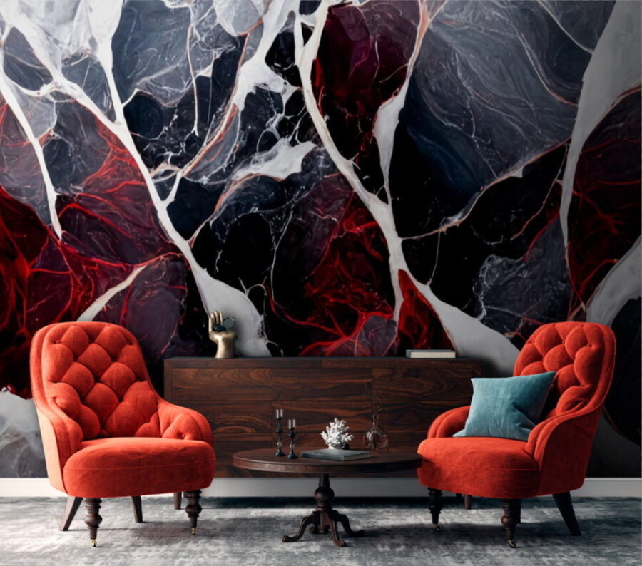 Σκεφτήκατε ποτέ ότι ο τοίχος σας θα μπορούσε να είναι κάτι περισσότερο από έναν απλό, ξέρετε, τοίχο; Επιτρέψτε μου να σας συστήσω αυτό το κόκκινο και μαύρο αριστούργημα. Είναι σαν να έχετε ένα κομμάτι αφηρημένης τέχνης ακριβώς στο σαλόνι σας, μόνο που δεν χρειάζεται να είστε τόσο σικ γι’ αυτό. Αυτή η τοιχογραφία αναμειγνύει βαθύ μαύρο, καπνιστό γκρι και φλογερό κόκκινο με τρόπο που φωνάζει “Είμαι πολύ πιο cool από έναν ζωγραφισμένο τοίχο”. Φανταστείτε το εξής: επιστρέφετε στο σπίτι μετά από μια κουραστική μέρα και αντί για βαρετό μπεζ, σας υποδέχεται αυτό το τολμηρό σχέδιο που σας ενεργοποιεί και σας παρηγορεί ταυτόχρονα. Έχει το δραματικό μαρμάρινο στυλ χωρίς την ψυχρή αίσθηση – ιδανικό για άνετες γωνίες ή για εκείνον τον τοίχο που χρειάζεται λίγο περισσότερο… oomph. Μετατρέψτε το χώρο σας σε γκαλερί ή απλά σε ένα σημείο όπου οι συζητήσεις ξεκινούν από μόνες τους. Εμπρός, χαθείτε στα βάθη της!
