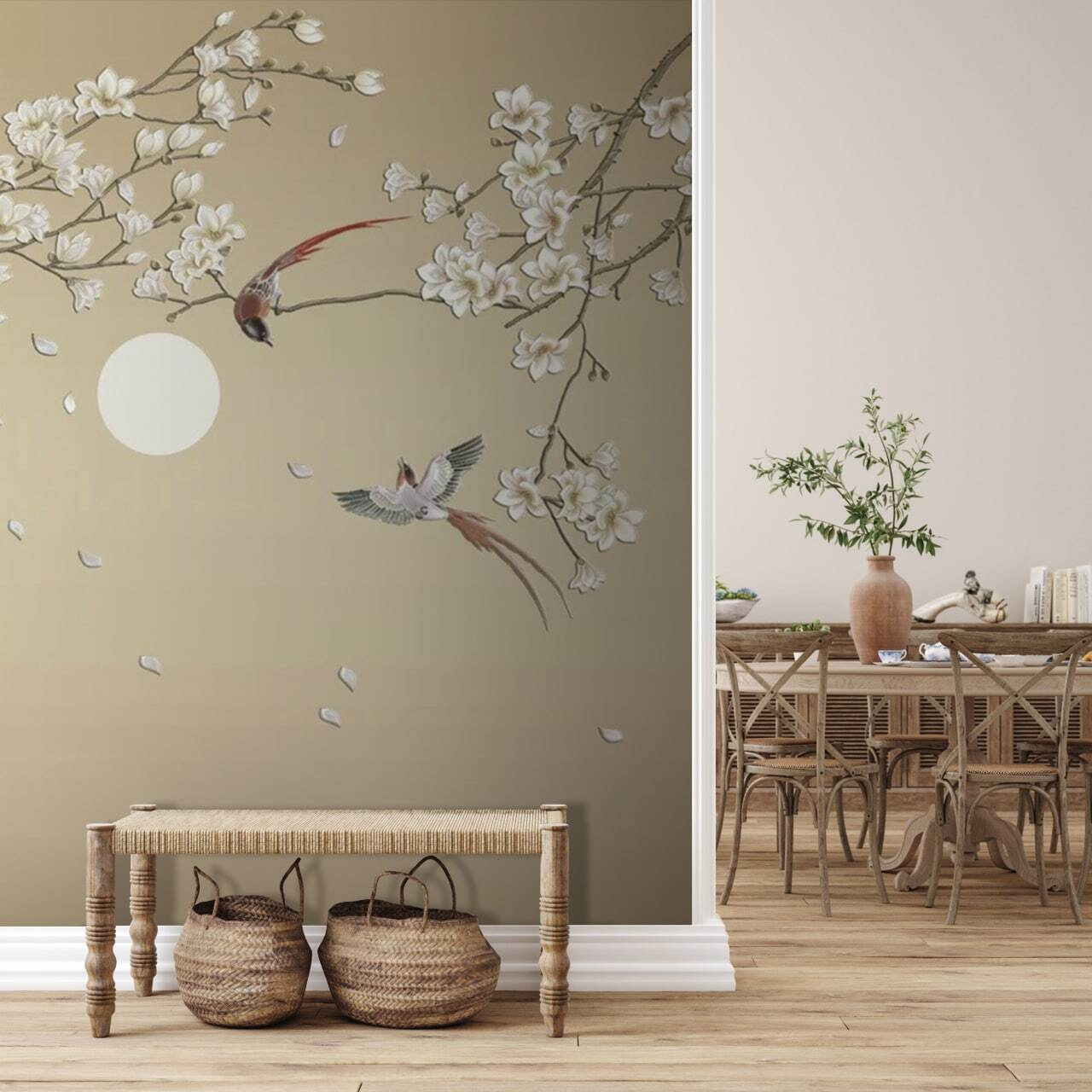 Φανταστείτε το: Επιστρέφετε στο σπίτι μετά από μια κουραστική μέρα, πέφτετε στον καναπέ σας και αφήνετε τον εαυτό σας να παρασυρθεί από την ειρηνική σκηνή της τοιχογραφίας. Τα πουλιά εν μέσω πτήσης σας κάνουν σχεδόν να αισθάνεστε ένα απαλό αεράκι και να ακούτε το αχνό θρόισμα των φύλλων. Περνάνε φίλοι; Πιθανότατα θα μαγευτούν, ίσως και να ζηλέψουν ελαφρώς, από αυτό το μοναδικό έργο τέχνης.