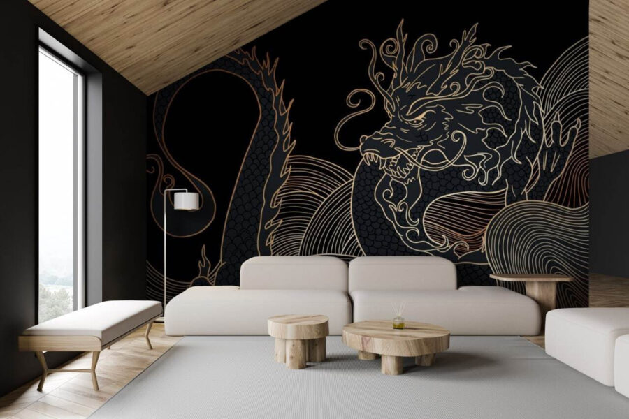 Βυθιστείτε σε έναν κόσμο θαυμάτων με την τοιχογραφία “Mystical Dragon Rises in Eerie Darkness”. Φανταστείτε έναν δράκο να ελίσσεται μέσα από μυστηριώδη κύματα, με το άγριο βλέμμα του και τα περίπλοκα σχέδιά του να σας παρασύρουν στην ιστορία του. Αυτό το εντυπωσιακό κομμάτι προσθέτει μια συναρπαστική ατμόσφαιρα σε κάθε χώρο, είτε πρόκειται για μια ζεστή γωνιά ανάγνωσης είτε για ένα ζωντανό σαλόνι.