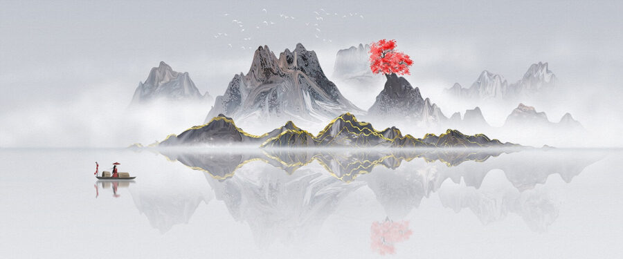 Transform any room with this stunning wall mural, featuring a majestic mountain range and a striking red tree set against a tranquil water backdrop. It’s like having a peaceful escape right in your home. Imagine cozying up with a cup of tea, letting the serene scene wash over you.