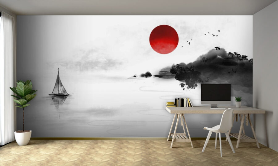 Φανταστείτε να μπαίνετε σε ένα δωμάτιο και να σας υποδέχεται μια τόσο ειρηνική σκηνή – αυτή η ονειρική τοιχογραφία απεικονίζει έναν κόκκινο κύκλο σε ένα γαλήνιο λευκό φόντο. Είναι σαν το δικό σας μικρό κομμάτι τέχνης Ζεν. Ο τολμηρός, κόκκινος ήλιος ξεχωρίζει εντυπωσιακά, προσφέροντας μια βουτιά αναζωογονητικού χρώματος που είναι δύσκολο να αγνοήσετε. Αν το συνδυάσετε με το απαλό, ομιχλώδες τοπίο, θα έχετε την τέλεια ισορροπία μεταξύ ηρεμίας και ζωντάνιας.