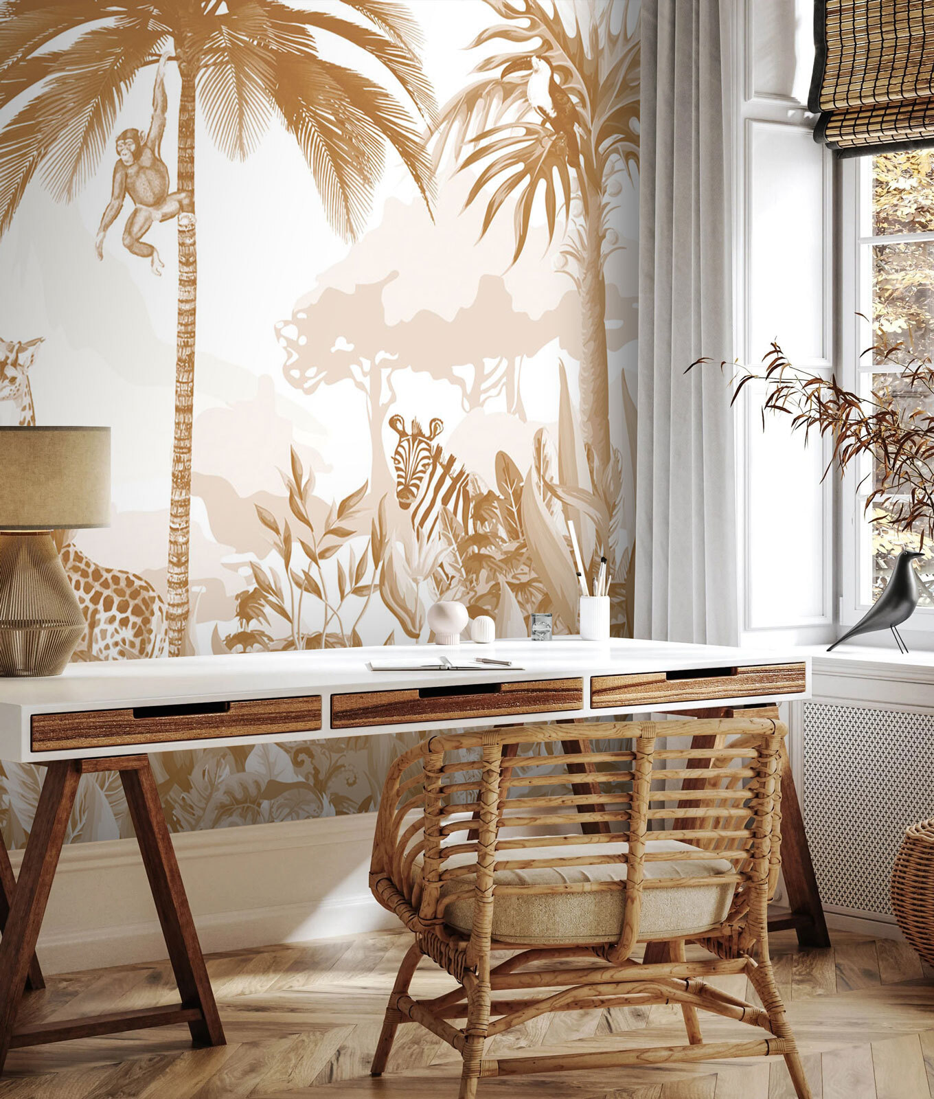 Φανταστείτε να μπαίνετε σε μια εξωτική περιπέτεια στη ζούγκλα κάθε φορά που μπαίνετε σε ένα δωμάτιο – ναι, αυτό είναι που φέρνει στο τραπέζι αυτό το “Ταπετσαρίες Giraffe and a Bird”! Με τις ευγενικές καμηλοπαρδάλεις να σκύβουν τον μακρύ λαιμό τους και ένα θρασύ πουλί να κάθεται κοντά, είναι σαν μια σκηνή από παραμύθι. Έχει αυτό το τέλειο μείγμα άγριας γοητείας και ηρεμιστικών δονήσεων της φύσης. Ιδανικό για έναν λάτρη των ζώων ή για οποιονδήποτε θέλει να αναβαθμίσει το χώρο του με κάτι funky και φρέσκο. Κρεμάστε το σε ένα παιδικό δωμάτιο, σε ένα σαλόνι ή ακόμα και σε ένα γραφείο – θα πυροδοτήσει τη φαντασία και θα φέρει κάθε φορά ένα χαμόγελο στο πρόσωπό σας. Μια μικρή απόδραση από τη ζούγκλα χωρίς καν να βγείτε από το σπίτι σας!