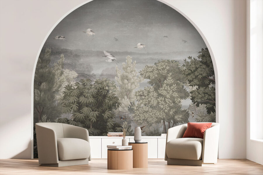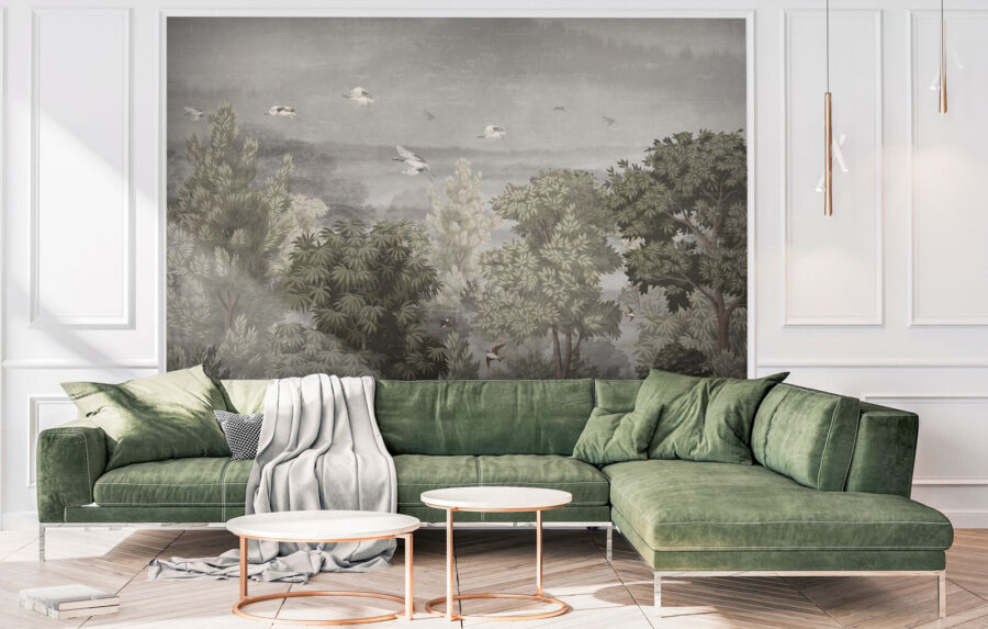 Φανταστείτε το εξής: μπαίνετε σε ένα δωμάτιο και μπαμ! Να το, μια τοιχογραφία με πουλιά που πετούν ψηλά στον ουρανό, περιτριγυρισμένη από πλούσιο πράσινο. Είναι σαν να μπαίνεις στον δικό σου μυστικό κήπο. Αισθάνεστε την ηρεμία; Τώρα, φανταστείτε ένα απαλό αεράκι να θροΐζει τα φύλλα κάθε φορά που το κοιτάτε. Είναι κάτι περισσότερο από διακόσμηση – είναι μια μίνι απόδραση από την καθημερινότητα.