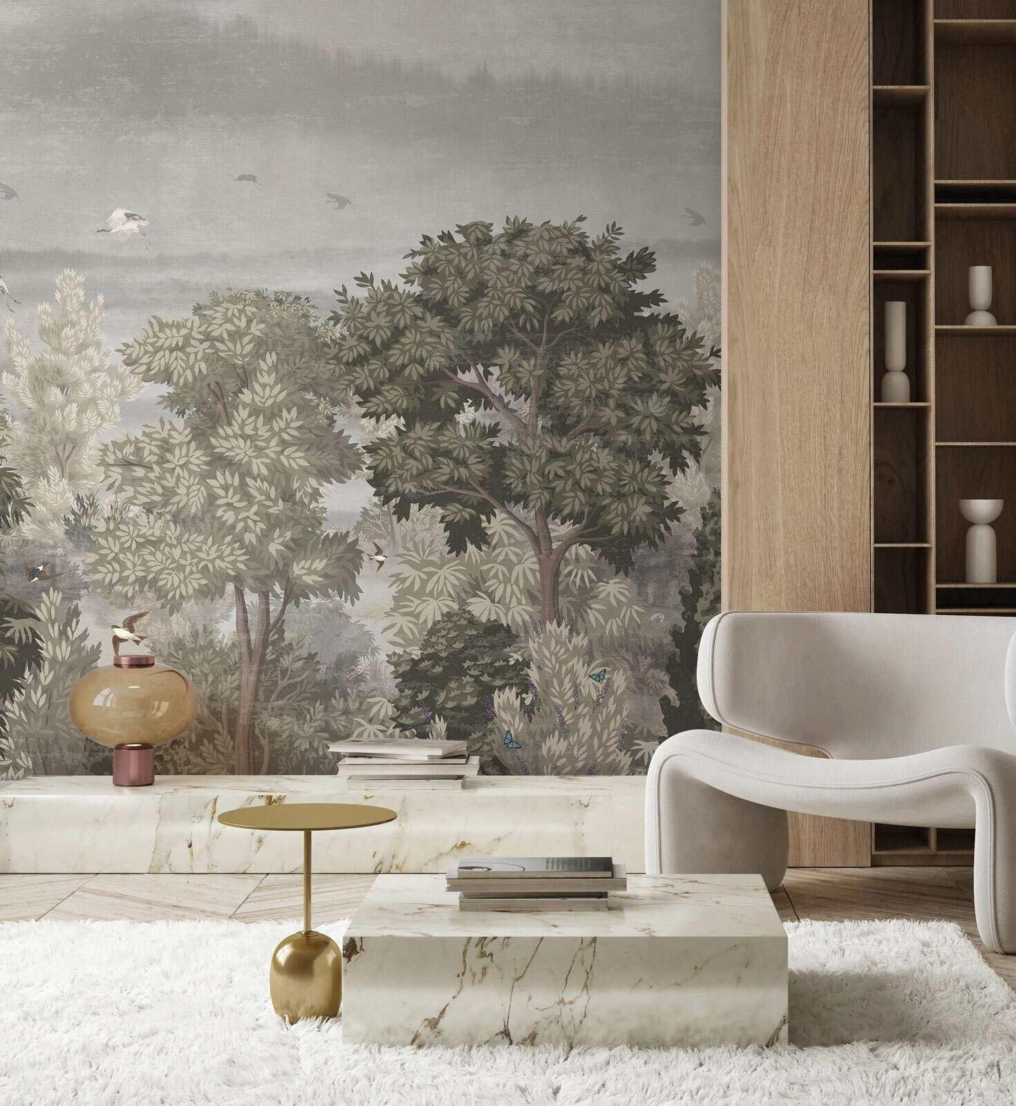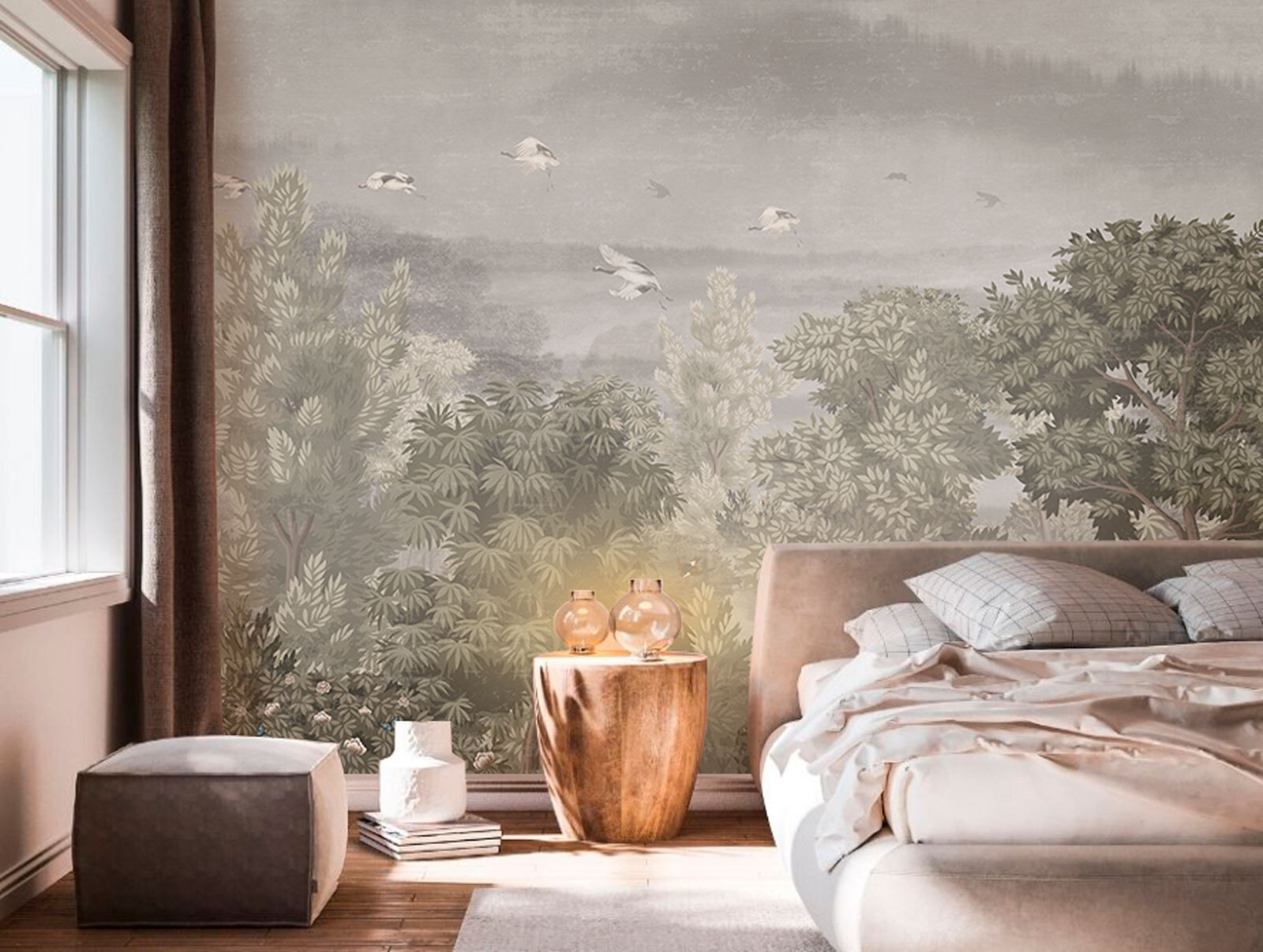 Φανταστείτε το εξής: μπαίνετε σε ένα δωμάτιο και μπαμ! Να το, μια τοιχογραφία με πουλιά που πετούν ψηλά στον ουρανό, περιτριγυρισμένη από πλούσιο πράσινο. Είναι σαν να μπαίνεις στον δικό σου μυστικό κήπο. Αισθάνεστε την ηρεμία; Τώρα, φανταστείτε ένα απαλό αεράκι να θροΐζει τα φύλλα κάθε φορά που το κοιτάτε. Είναι κάτι περισσότερο από διακόσμηση – είναι μια μίνι απόδραση από την καθημερινότητα.